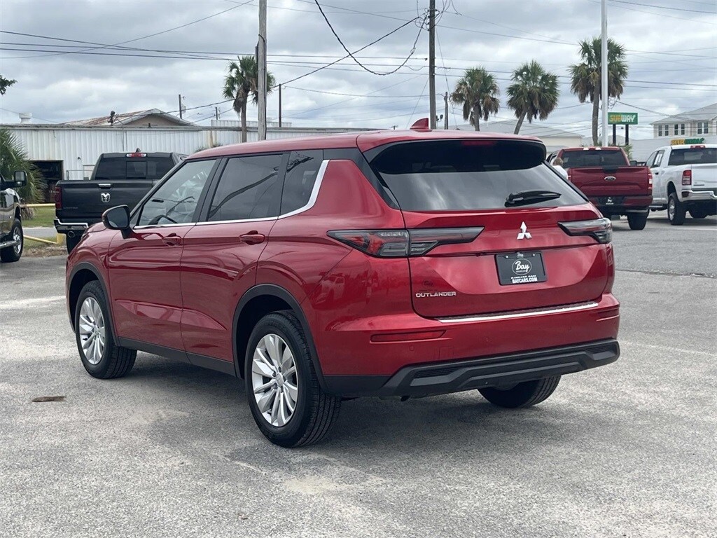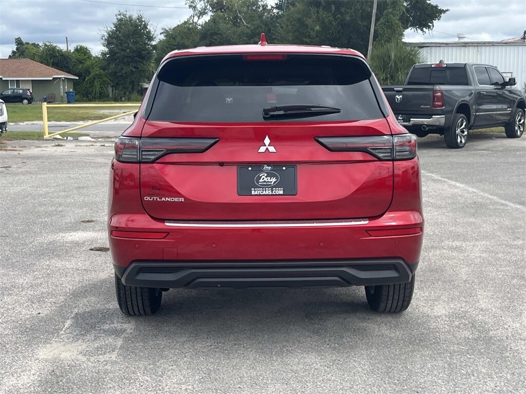 Red 2025 Mitsubishi Outlander ES FWD CVT 2.5L I4 DOHC 16V LEV3-SULEV30 181hp 18" Alloy Wheels, 3rd row seats: split-bench, 4-Wheel Disc Brakes, 8 Speakers, ABS brakes, Air Conditioning, Alloy wheels, AM/FM radio: SiriusXM, Android Auto & Apple CarPlay, Auto High-beam Headlights, Auto-dimming Rear-View mirror, Automatic temperature control, Blind Spot Warning, Brake assist, Bumpers: body-color, Cloth Fabric Seating Surfaces, Driver door bin, Driver vanity mirror, Dual front impact airbags, Dual front side impact airbags, Electronic Stability Control, Emergency communication system: Mitsubishi Connect w/ 24-month trial, Exterior Parking Camera Rear, Four wheel independent suspension, Front anti-roll bar, Front Bucket Seats, Front Center Armrest w/Storage, Front dual zone A/C, Front reading lights, Fully automatic headlights, Illuminated entry, Knee airbag, Low tire pressure warning, Navigation System, Occupant sensing airbag, Outside temperature display, Overhead airbag, Overhead console, Panic alarm, Passenger door bin, Passenger vanity mirror, Power door mirrors, Power steering, Power windows, Radio data system, Radio: AM/FM 12.3" Navigation w/Smartphone-Link, Rear anti-roll bar, Rear Parking Sensors, Rear seat center armrest, Rear side impact airbag, Rear window defroster, Rear window wiper, Reclining 3rd row seat, Remote keyless entry, Security system, Speed control, Speed-Sensitive Wipers, Split folding rear seat, Spoiler, Steering wheel mounted audio controls, Tachometer, Telescoping steering wheel, Tilt steering wheel, Traction control, Trip computer, Turn signal indicator mirrors, Variably intermittent wipers.