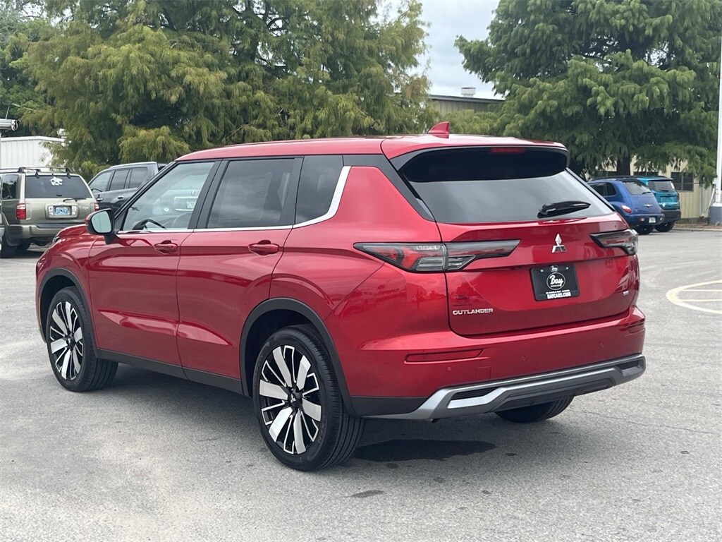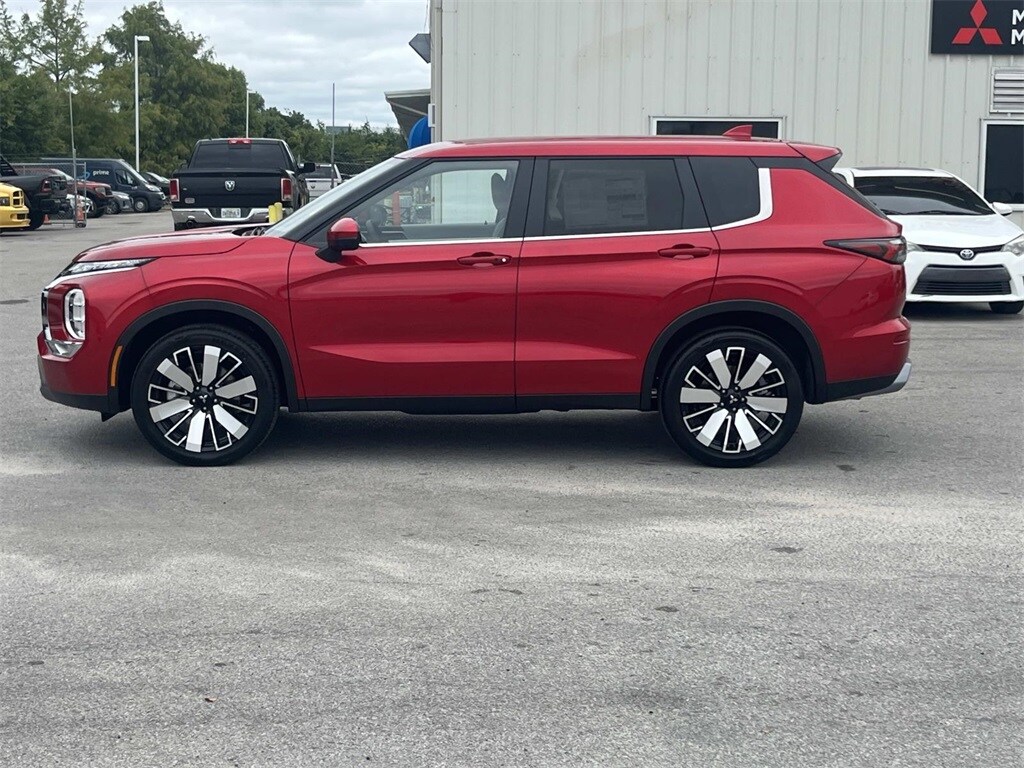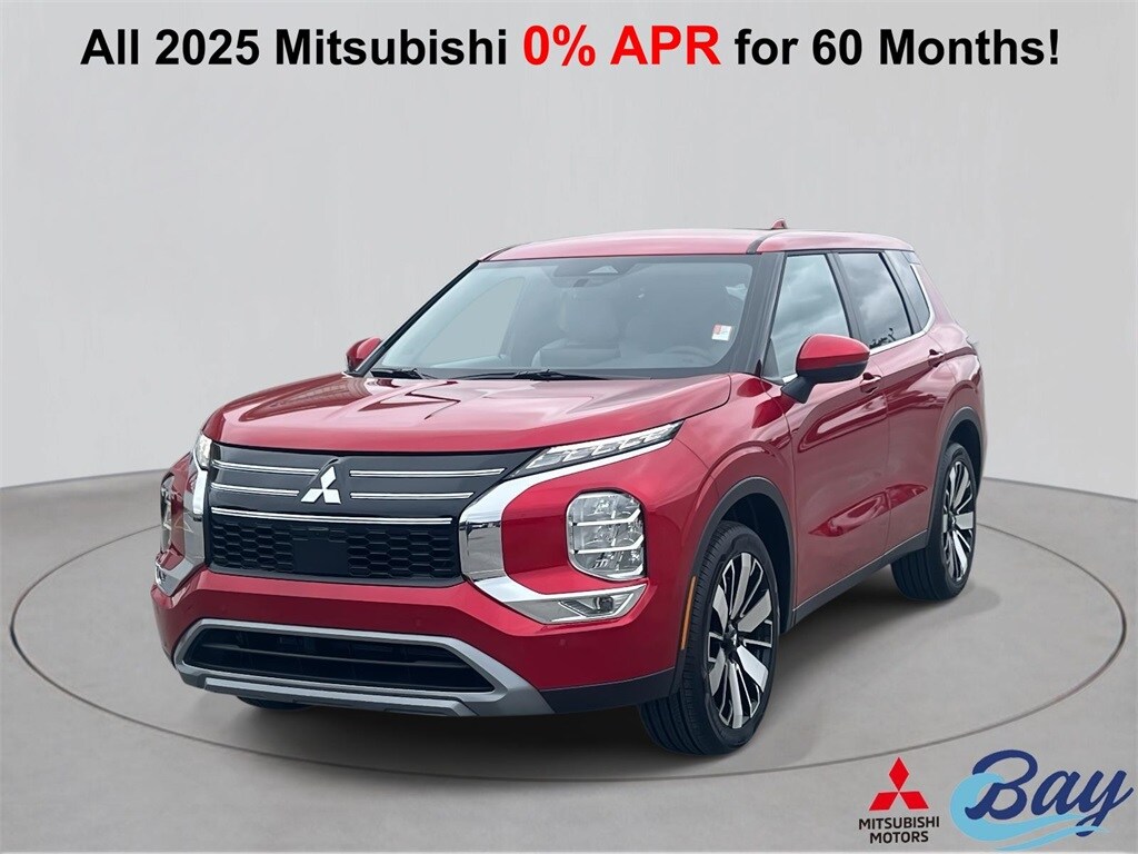 Red 2025 Mitsubishi Outlander SE FWD CVT 2.5L I4 DOHC 16V LEV3-SULEV30 181hp 3rd row seats: split-bench, 4-Wheel Disc Brakes, 8 Speakers, ABS brakes, Air Conditioning, Alloy wheels, AM/FM radio: SiriusXM, Android Auto & Apple CarPlay, Auto High-beam Headlights, Auto-dimming Rear-View mirror, Automatic temperature control, Brake assist, Bumpers: body-color, Driver door bin, Driver vanity mirror, Dual front impact airbags, Dual front side impact airbags, Electronic Stability Control, Emergency communication system: Mitsubishi Connect w/ 24-month trial, Exterior Parking Camera Rear, Four wheel independent suspension, Front anti-roll bar, Front Bucket Seats, Front Center Armrest w/Storage, Front dual zone A/C, Front fog lights, Front reading lights, Fully automatic headlights, Garage door transmitter: HomeLink, Heated door mirrors, Heated Front Bucket Seats, Heated front seats, Illuminated entry, Knee airbag, Leather Shift Knob, Leather steering wheel, Low tire pressure warning, Navigation System, Occupant sensing airbag, Outside temperature display, Overhead airbag, Overhead console, Panic alarm, Passenger door bin, Passenger vanity mirror, Power door mirrors, Power driver seat, Power Liftgate, Power steering, Power windows, Radio data system, Radio: AM/FM 12.3" Navigation w/Smartphone-Link, Rain sensing wipers, Rear anti-roll bar, Rear seat center armrest, Rear side impact airbag, Rear window defroster, Rear window wiper, Reclining 3rd row seat, Remote keyless entry, Security system, Speed control, Speed-Sensitive Wipers, Split folding rear seat, Spoiler, Steering wheel mounted audio controls, Synthetic Leather Seating Surfaces, Tachometer, Telescoping steering wheel, Tilt steering wheel, Traction control, Trip computer, Turn signal indicator mirrors, Variably intermittent wipers, Wheels: 20" Two-Tone Alloy.