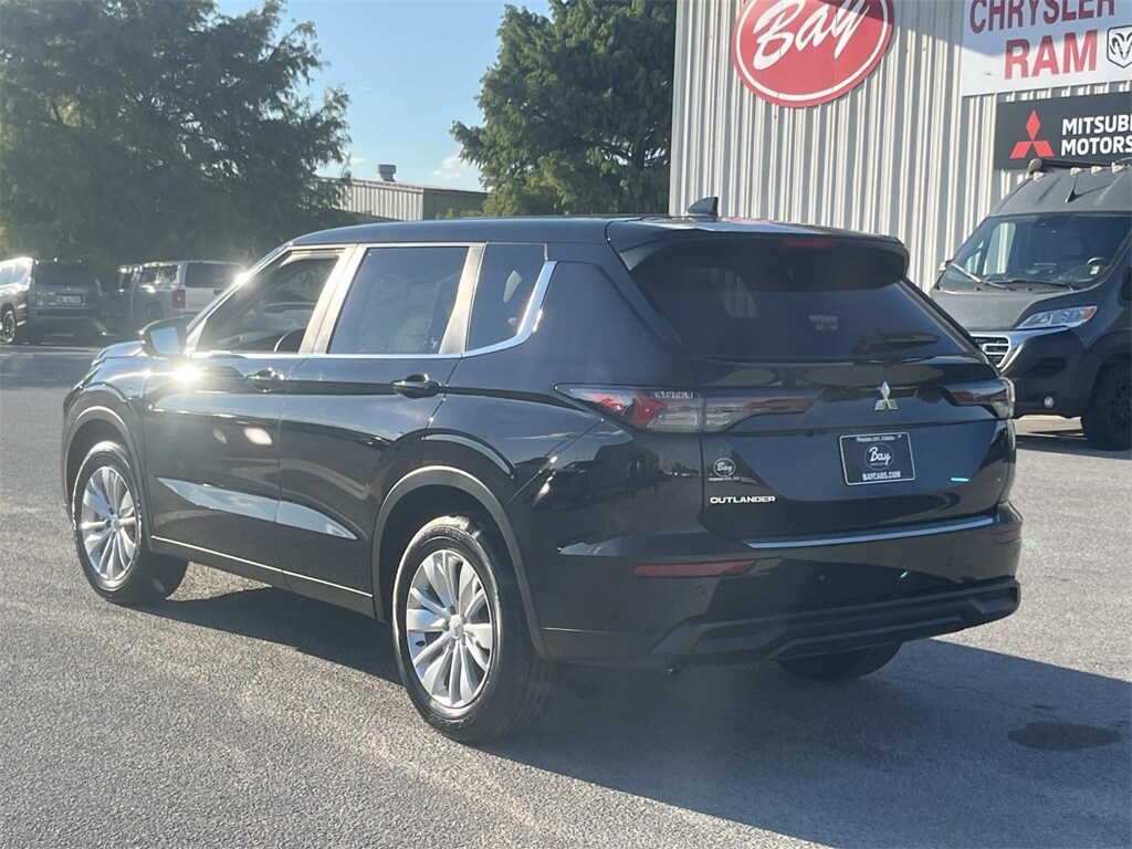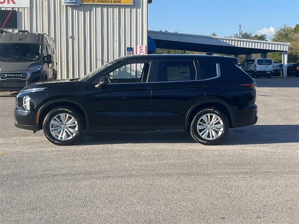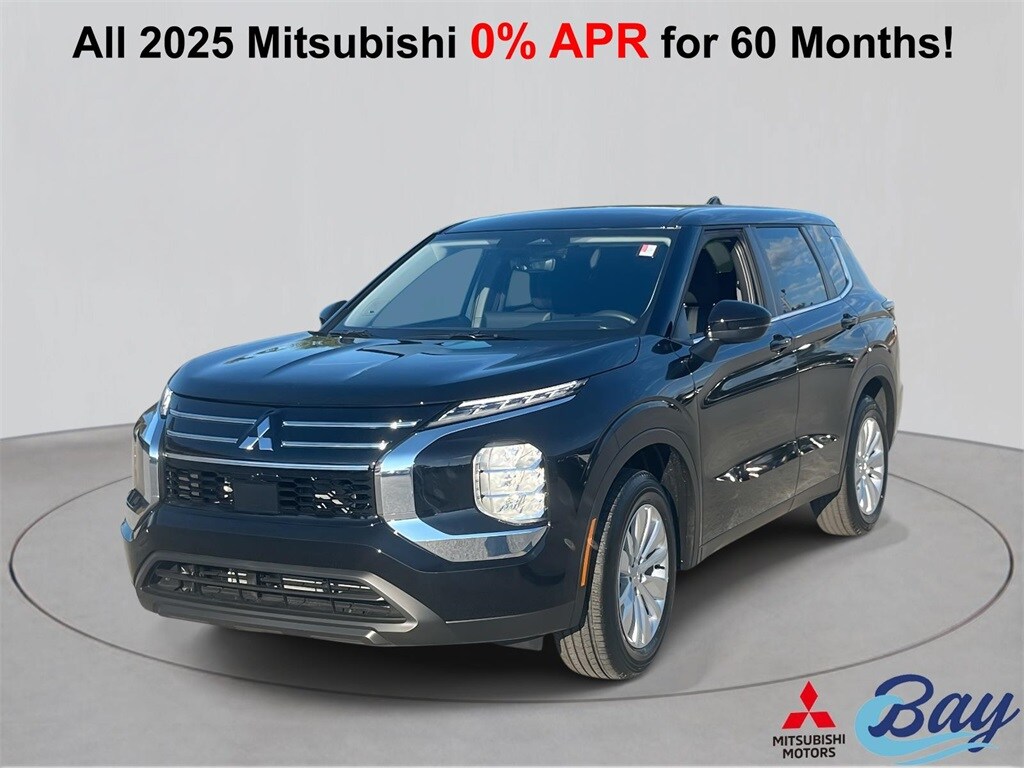 Black 2025 Mitsubishi Outlander ES FWD CVT 2.5L I4 DOHC 16V LEV3-SULEV30 181hp 18" Alloy Wheels, 3rd row seats: split-bench, 4-Wheel Disc Brakes, 8 Speakers, ABS brakes, Air Conditioning, Alloy wheels, AM/FM radio: SiriusXM, Android Auto & Apple CarPlay, Auto High-beam Headlights, Auto-dimming Rear-View mirror, Automatic temperature control, Blind Spot Warning, Brake assist, Bumpers: body-color, Cloth Fabric Seating Surfaces, Driver door bin, Driver vanity mirror, Dual front impact airbags, Dual front side impact airbags, Electronic Stability Control, Emergency communication system: Mitsubishi Connect w/ 24-month trial, Exterior Parking Camera Rear, Four wheel independent suspension, Front anti-roll bar, Front Bucket Seats, Front Center Armrest w/Storage, Front dual zone A/C, Front reading lights, Fully automatic headlights, Illuminated entry, Knee airbag, Low tire pressure warning, Navigation System, Occupant sensing airbag, Outside temperature display, Overhead airbag, Overhead console, Panic alarm, Passenger door bin, Passenger vanity mirror, Power door mirrors, Power steering, Power windows, Radio data system, Radio: AM/FM 12.3" Navigation w/Smartphone-Link, Rear anti-roll bar, Rear Parking Sensors, Rear seat center armrest, Rear side impact airbag, Rear window defroster, Rear window wiper, Reclining 3rd row seat, Remote keyless entry, Security system, Speed control, Speed-Sensitive Wipers, Split folding rear seat, Spoiler, Steering wheel mounted audio controls, Tachometer, Telescoping steering wheel, Tilt steering wheel, Traction control, Trip computer, Turn signal indicator mirrors, Variably intermittent wipers.