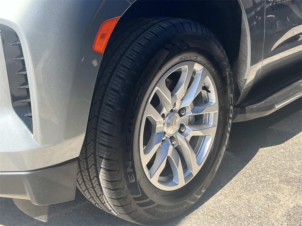 Black Leather, 1st & 2nd Row Color-Keyed Carpeted Floor Mats, Auto-Dimming Inside Rear-View Mirror, Bose 9-Speaker Stereo Audio System Feature, Bright Front & Rear Door Sill Plates, Color-Keyed Carpeting Floor Covering, Driver & Front Outboard Passenger Airbags, Enhanced Driver Information Center, Floor Console w/Storage Area, Hands-Free Rear Power Programmable Liftgate, LED Daytime Running Lamps, Memory Settings for Driver, Navigation System, Power Liftgate, Preferred Equipment Group 1LT, Rear air conditioning, Remote Start, SiriusXM w/360L, Universal Home Remote, Wireless Charging, Wrapped Steering Wheel, 10-Way Power Driver & Passenger Seat Adjusters, 3.23 Rear Axle Ratio, 3rd row seats: split-bench, 4-Wheel Disc Brakes, 9 Speakers, ABS brakes, Air Conditioning, Alloy wheels, AM/FM radio: SiriusXM with 360L, Apple CarPlay/Android Auto, Auto High-beam Headlights, Auto-dimming Rear-View mirror, Automatic temperature control, Brake assist, Bumpers: body-color, Compass, Delay-off headlights, Deleted 3 Years of OnStar Remote Access, Driver door bin, Driver vanity mirror, Dual front impact airbags, Dual front side impact airbags, Electronic Stability Control, Emergency communication system: OnStar and Chevrolet connected services capable, Four wheel independent suspension, Front anti-roll bar, Front Bucket Seats, Front Center Armrest, Front dual zone A/C, Front High-Back Reclining Bucket Seats, Front reading lights, Fully automatic headlights, Garage door transmitter, Heated door mirrors, Heated Driver & Front Passenger Seats, Heated front seats, Illuminated entry, Infotainment Display, Leather-Appointed Seat Trim, Low tire pressure warning, Memory seat, Occupant sensing airbag, Outside temperature display, Overhead airbag, Overhead console, Panic alarm, Passenger door bin, Passenger vanity mirror, Power door mirrors, Power driver seat, Power passenger seat, Power steering, Power windows, Premium audio system: Chevrolet Infotainment 3 Premium, Premium Smooth Ride Suspension, Radio: Chevrolet Infotainment 3 Premium System, Rain sensing wipers, Rear anti-roll bar, Rear reading lights, Rear seat center armrest, Rear window defroster, Rear window wiper, Remote keyless entry, Roof rack: xxxxxx, Security system, Speed control, Speed-sensing steering, Split folding rear seat, Spoiler, Steering wheel mounted audio controls, Tachometer, Telescoping steering wheel, Tilt steering wheel, Traction control, Trip computer, Variably intermittent wipers, Voltmeter, Wheels: 18" x 8.5" Bright Silver Painted Aluminum, Black Leather, 1st & 2nd Row Color-Keyed Carpeted Floor Mats, Auto-Dimming Inside Rear-View Mirror, Bose 9-Speaker Stereo Audio System Feature, Bright Front & Rear Door Sill Plates, Color-Keyed Carpeting Floor Covering, Driver & Front Outboard Passenger Airbags, Enhanced Driver Information Center, Floor Console w/Storage Area, Hands-Free Rear Power Programmable Liftgate, LED Daytime Running Lamps, Memory Settings for Driver, Navigation System, Power Liftgate, Preferred Equipment Group 1LT, Rear air conditioning, Remote Start, SiriusXM w/360L, Universal Home Remote, Wireless Charging, Wrapped Steering Wheel. Sterling Gray Metallic 2024 Chevrolet Tahoe LT RWD 10-Speed Automatic with Overdrive EcoTec3 5.3L V8