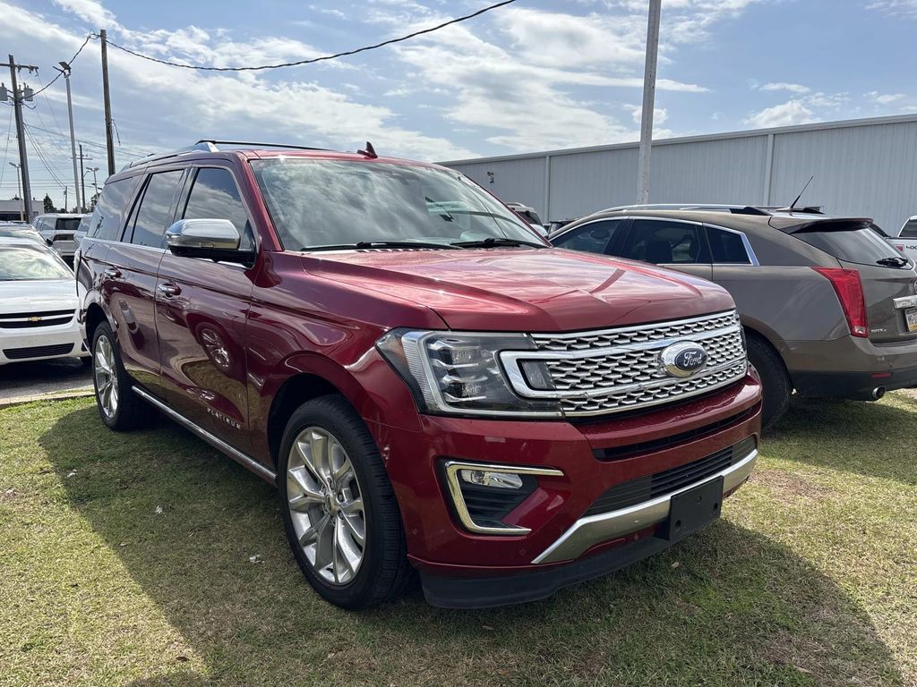 22" Polished Aluminum Wheels, 3rd row seats: split-bench, Electronic Limited Slip w/3.73 Axle Ratio, Equipment Group 600A, Exterior Parking Camera Rear, Heated front seats, Heated rear seats, Heavy-Duty Engine Radiator, Heavy-Duty Trailer Tow Package, Integrated Trailer Brake Controller, Navigation System, Power Liftgate, Power moonroof, Pro Trailer Backup Assist, Rear air conditioning, Reclining 3rd row seat, 12 Speakers, 1st & 2nd Row Floor Liners, 2nd Row Bucket Seats, 4-Wheel Disc Brakes, ABS brakes, Adaptive suspension, Adjustable pedals, Air Conditioning, Alloy wheels, AM/FM radio: SiriusXM, AppLink/Apple CarPlay and Android Auto, Auto High-beam Headlights, Auto-dimming door mirrors, Auto-dimming Rear-View mirror, Automatic temperature control, Brake assist, Bumpers: body-color, Compass, Delay-off headlights, Driver door bin, Driver vanity mirror, Dual front impact airbags, Dual front side impact airbags, Electronic Stability Control, Emergency communication system: SYNC 3 911 Assist, Four wheel independent suspension, Front anti-roll bar, Front Bucket Seats, Front Center Armrest, Front dual zone A/C, Front fog lights, Front reading lights, Fully automatic headlights, Garage door transmitter, Genuine wood console insert, Genuine wood dashboard insert, Genuine wood door panel insert, Heated & Cooled Perforated Leather Fr Bucket Seats, Heated door mirrors, Heated steering wheel, Illuminated entry, Lane Departure Warning System, Leather steering wheel, Low tire pressure warning, Memory seat, Occupant sensing airbag, Outside temperature display, Overhead airbag, Overhead console, Panic alarm, Passenger door bin, Passenger vanity mirror, Pedal memory, Power door mirrors, Power driver seat, Power passenger seat, Power steering, Power windows, Radio data system, Radio: B&O Sound System by Bang & Olufsen, Rain sensing wipers, Rear anti-roll bar, Rear audio controls, Rear reading lights, Rear window defroster, Rear window wiper, Remote keyless entry, Roof rack, Security system, SiriusXM Satellite Radio, Speed control, Speed-sensing steering, Speed-Sensitive Wipers, Split folding rear seat, Steering wheel memory, Steering wheel mounted audio controls, SYNC 3 Communications & Entertainment System, Tachometer, Telescoping steering wheel, Tilt steering wheel, Traction control, Trip computer, Turn signal indicator mirrors, Variably intermittent wipers, Ventilated front seats, Voltmeter, 22" Polished Aluminum Wheels, 3rd row seats: split-bench, Electronic Limited Slip w/3.73 Axle Ratio, Equipment Group 600A, Exterior Parking Camera Rear, Heated front seats, Heated rear seats, Heavy-Duty Engine Radiator, Heavy-Duty Trailer Tow Package, Integrated Trailer Brake Controller, Navigation System, Power Liftgate, Power moonroof, Pro Trailer Backup Assist, Rear air conditioning, Reclining 3rd row seat. Ruby Red Metallic 2019 Ford Expedition Platinum RWD 10-Speed Automatic EcoBoost 3.5L V6 GTDi DOHC 24V Twin Turbocharged
