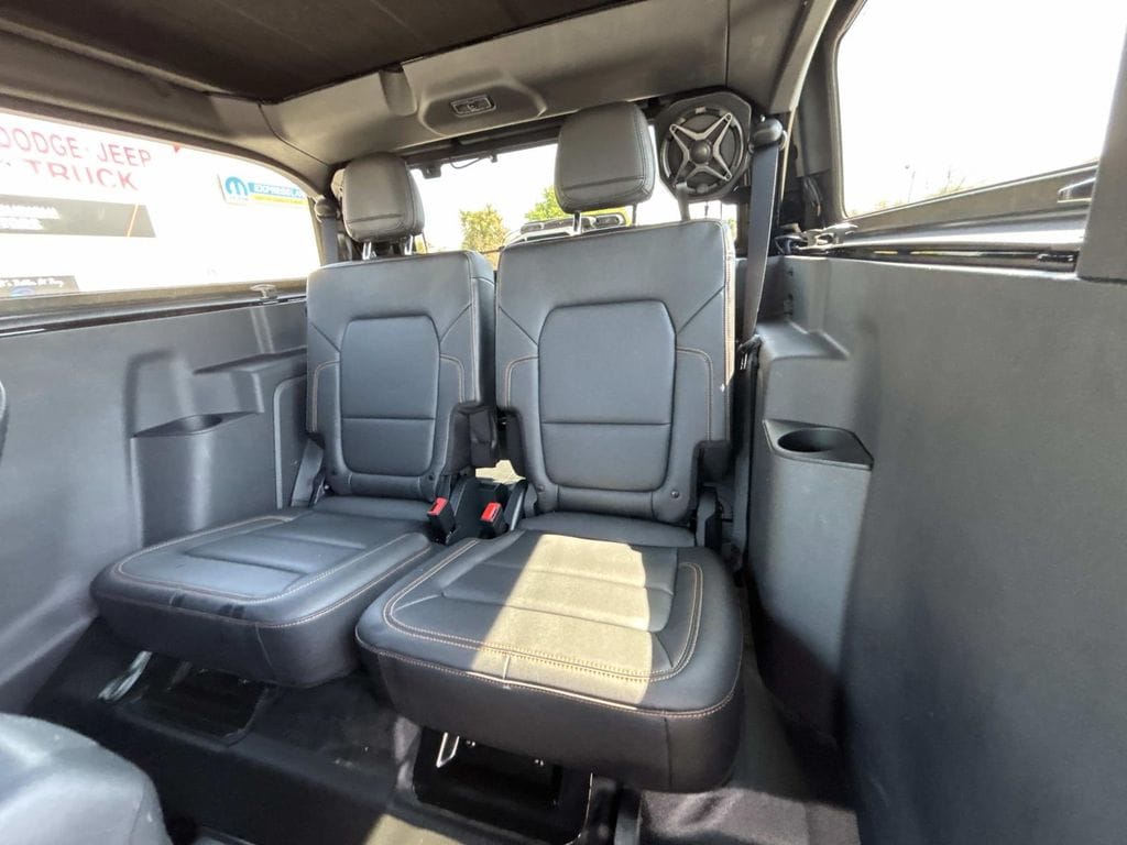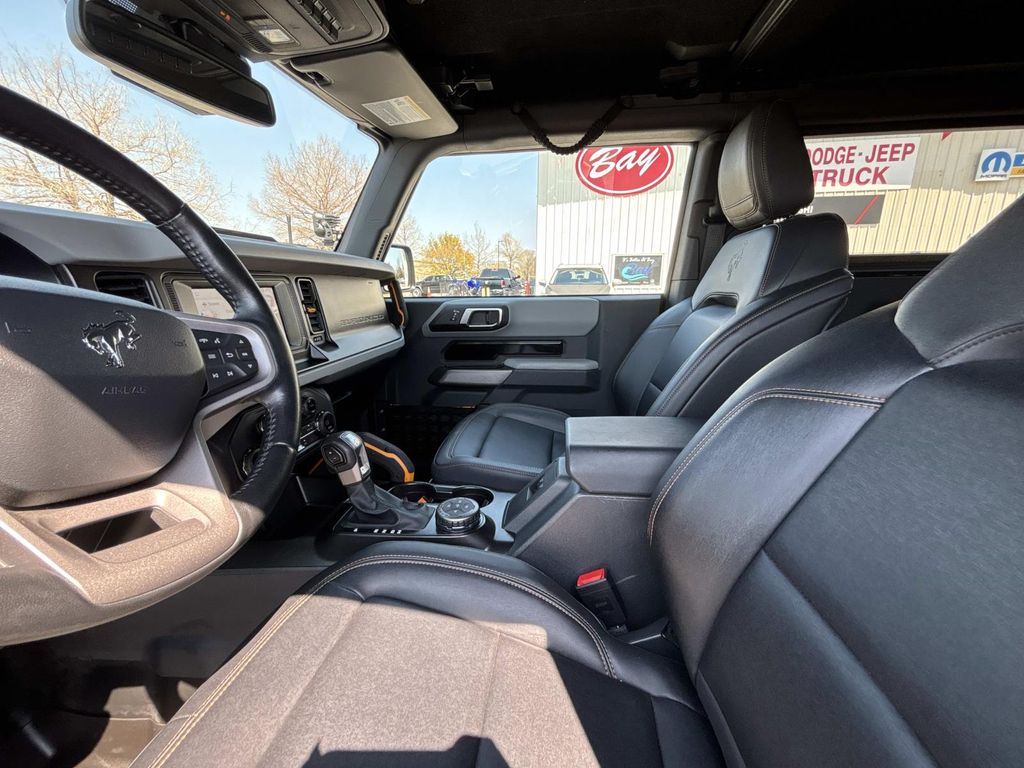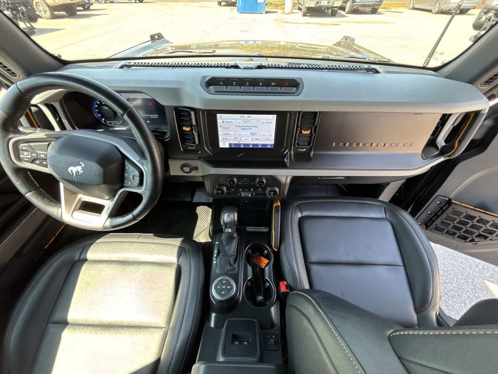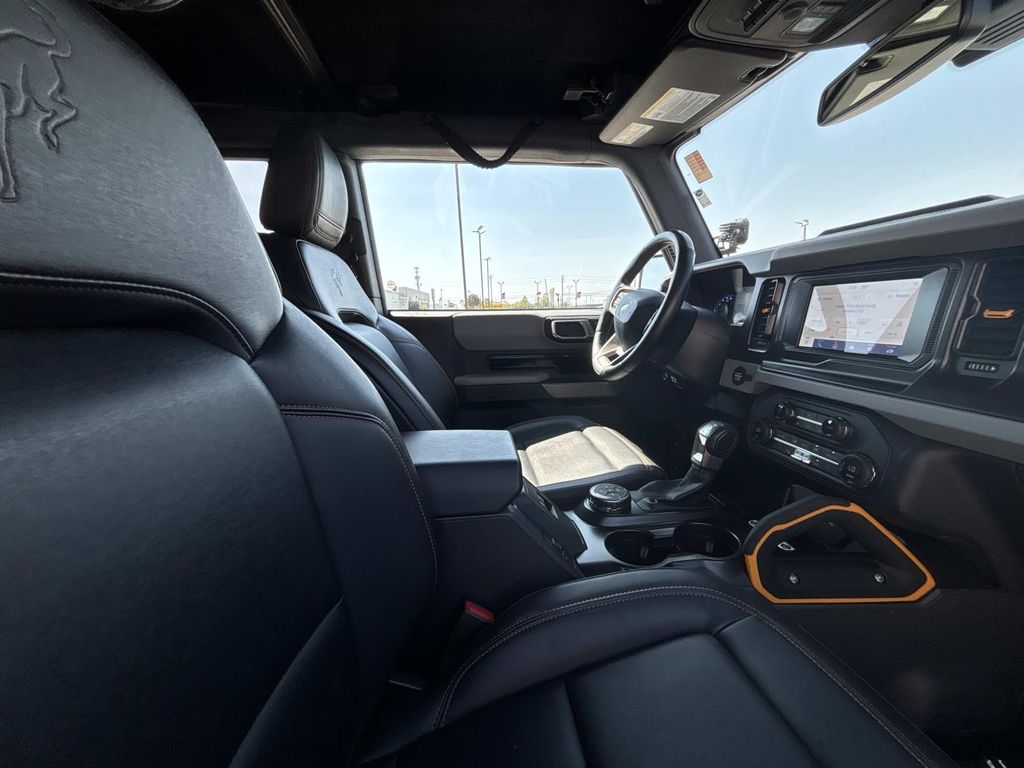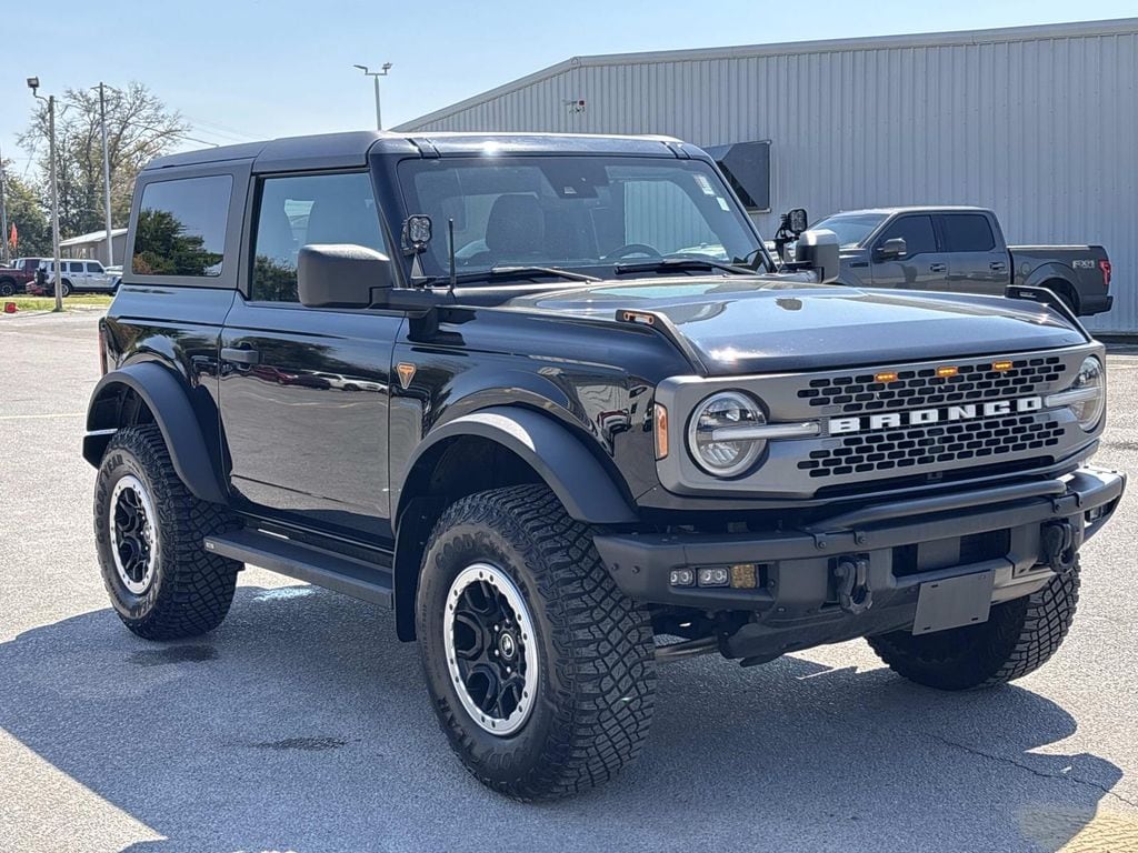 2-Door Intelligent Access w/Lock/Unlock, 4.7 Final Drive Ratio, Ambient Footwell Lighting, Auto-Dimming Interior Rear-View Mirror, Connected Navigation, Dr & Pass Illuminated Sliding Visor Vanity Mirrors, Dual-Zone Electronic Automatic Temperature Control, Enhanced Voice Recognition, Equipment Group 332A Mid Package, Front Row Heated Seats, Hard Top Sound Deadening Headliner, High Clearance Fender Flares, High Clearance Suspension, Position-Sensitive Bilstein Shock Absorbers, Power Outlet - Back Side of Center Floor Console, Reverse Sensing System, Sasquatch Package, Wheels: 17" Black High Gloss-Painted Aluminum, 4-Wheel Disc Brakes, 4.7 Axle Ratio, 6 Speakers, ABS brakes, Air Conditioning, Alloy wheels, AM/FM radio: SiriusXM with 360L, AM/FM Stereo, Auto High-Beam Headlamps, Auto High-beam Headlights, BLIS Blind Spot Information System, Brake assist, Compass, Convertible HardTop, Convertible roof lining, Delay-off headlights, Driver door bin, Driver vanity mirror, Dual front impact airbags, Dual front side impact airbags, Emergency communication system: 911 Assist, Exterior Parking Camera Rear, Front anti-roll bar, Front Bucket Seats, Front Center Armrest, Front reading lights, Front wheel independent suspension, Fully automatic headlights, Glass rear window, Heated door mirrors, Illuminated entry, Integrated roll-over protection, Lane-Keeping System, Leather Shift Knob, Low tire pressure warning, Marine Grade Vinyl Bucket Seats, Occupant sensing airbag, Outside temperature display, Overhead airbag, Overhead console, Panic alarm, Passenger door bin, Passenger vanity mirror, Power door mirrors, Power steering, Power windows, Pre-Collision Assist w/Automatic Emergency Braking, Radio data system, Rear window defroster, Rear window wiper, Rear-View Camera, Remote keyless entry, Security system, SiriusXM Radio w/360L, Speed control, Split folding rear seat, Steering wheel mounted audio controls, SYNC 4, Tachometer, Telescoping steering wheel, Tilt steering wheel, Traction control, Trip computer, Variably intermittent wipers, Voltmeter, Wheels: 17" Machined Carbonized Aluminum, 2-Door Intelligent Access w/Lock/Unlock, 4.7 Final Drive Ratio, Ambient Footwell Lighting, Auto-Dimming Interior Rear-View Mirror, Connected Navigation, Dr & Pass Illuminated Sliding Visor Vanity Mirrors, Dual-Zone Electronic Automatic Temperature Control, Enhanced Voice Recognition, Equipment Group 332A Mid Package, Front Row Heated Seats, Hard Top Sound Deadening Headliner, High Clearance Fender Flares, High Clearance Suspension, Position-Sensitive Bilstein Shock Absorbers, Power Outlet - Back Side of Center Floor Console, Reverse Sensing System, Sasquatch Package, Wheels: 17" Black High Gloss-Painted Aluminum. Shadow Black 2021 Ford Bronco Badlands 4WD 10-Speed Automatic 2.7L EcoBoost V6