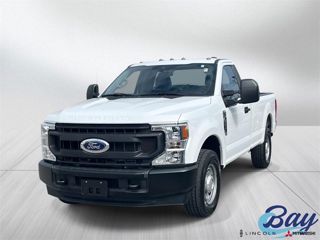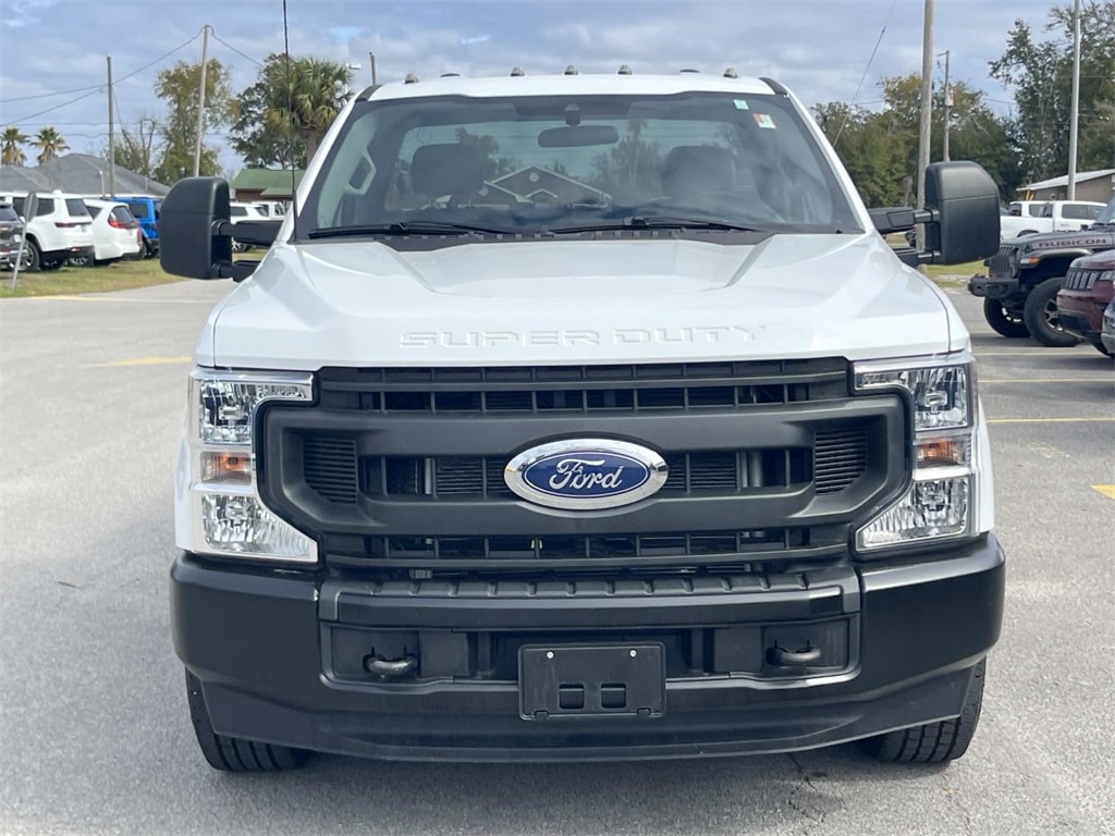 Exterior Parking Camera Rear, GVWR: 10,500 lb Payload Package, 110V/400W Outlet, 4-Wheel Disc Brakes, ABS brakes, Air Conditioning, Brake assist, Center High-Mounted Stop Lamp (CHMSL), Cloth 40/20/40 Split Bench Seat, Compass, Delay-off headlights, Dual front impact airbags, Dual front side impact airbags, Electronic Stability Control, Fixed Rear-Window w/Defrost, Front anti-roll bar, Front reading lights, Front wheel independent suspension, Fully automatic headlights, LED Roof Clearance Lights, Low tire pressure warning, Outside temperature display, Overhead airbag, Passenger cancellable airbag, Passenger vanity mirror, Power steering, Privacy Glass, Rear step bumper, SiriusXM Radio, Steering wheel mounted audio controls, SYNC 3 Communications & Entertainment System, Tachometer, Telescoping steering wheel, Tilt steering wheel, Traction control, Trip computer, Variably intermittent wipers, Wheels: 18" Sparkle Silver Painted Cast Aluminum, Exterior Parking Camera Rear, GVWR: 10,500 lb Payload Package. Oxford White 2021 Ford F-350SD XL RWD 10-Speed Automatic 6.2L V8 EFI SOHC 16V Flex Fuel