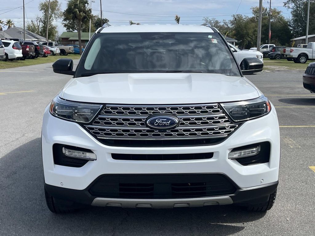 4WD, 20" Premium Painted Aluminum Wheels, 3rd row seats: bench, Equipment Group 300A, Exterior Parking Camera Rear, Heated front seats, Heated rear seats, Power Liftgate, Power passenger seat, 12 Speakers, 2nd Row 35/30/35 Bench w/E-Z Entry & Armrest, 3.58 Non-Limited-Slip Rear Axle Ratio, 4-Wheel Disc Brakes, 4G LTE Wi-Fi Hotspot Credit, ABS brakes, Air Conditioning, Alloy wheels, AM/FM radio: SiriusXM, Auto High-beam Headlights, Auto-dimming Rear-View mirror, Automatic temperature control, Brake assist, Bumpers: body-color, Compass, Delay-off headlights, Driver door bin, Driver vanity mirror, Dual front impact airbags, Dual front side impact airbags, Electronic Stability Control, Emergency communication system: SYNC 3 911 Assist, FordPass Connect, Four wheel independent suspension, Front anti-roll bar, Front Bucket Seats, Front Center Armrest, Front dual zone A/C, Front fog lights, Front reading lights, Fully automatic headlights, Garage door transmitter, Heated door mirrors, Heated steering wheel, Illuminated entry, Knee airbag, Leather Heated/Ventilated Captain's Chairs, Leather steering wheel, Low tire pressure warning, Navigation System, Occupant sensing airbag, Outside temperature display, Overhead airbag, Overhead console, Panic alarm, Passenger door bin, Passenger vanity mirror, Power door mirrors, Power driver seat, Power steering, Power windows, Radio data system, Radio: B&O Sound System by Bang & Olufsen, Rain sensing wipers, Rear air conditioning, Rear anti-roll bar, Rear reading lights, Rear window defroster, Rear window wiper, Remote keyless entry, Roof rack: rails only, Security system, Speed control, Speed-sensing steering, Speed-Sensitive Wipers, Split folding rear seat, Spoiler, Steering wheel mounted audio controls, SYNC 3 Communications & Entertainment System, SYNC 3/Apple CarPlay/Android Auto, Tachometer, Telescoping steering wheel, Tilt steering wheel, Traction control, Trip computer, Variably intermittent wipers, Ventilated front seats, Voice-Activated Touchscreen Navigation System, 4WD, 20" Premium Painted Aluminum Wheels, 3rd row seats: bench, Equipment Group 300A, Exterior Parking Camera Rear, Heated front seats, Heated rear seats, Power Liftgate, Power passenger seat. Oxford White 2023 Ford Explorer Limited 4WD 10-Speed Automatic 2.3L EcoBoost I-4