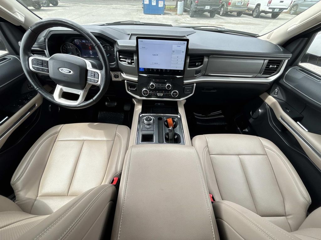110V/150W AC Power Outlet, 18" Machined-Face Aluminum Wheels, 2nd Row Power-Folding 40/20/40 ActiveX Bench Seat, 2nd Row Power-Folding Captain's Chairs, 3.31 Axle Ratio, 3rd row seats: split-bench, 3rd Row Vinyl Power-Folding Head Restraints, 4-Door Intelligent Access (Lock/Unlock), 4-Wheel Disc Brakes, 6 Speakers, ABS brakes, Accent Color Painted Rear Bumper, ActiveX-Trimmed 1st & 2nd Row Seats, Advanced Security Pack, Air Conditioning, Alloy wheels, AM/FM radio: SiriusXM with 360L, Ambient Lighting, Auto High-beam Headlights, Auto-dimming Rear-View mirror, Automatic temperature control, Brake assist, Bumpers: body-color, Cloth Front Captain's Chairs, Compass, Delay-off headlights, Driver door bin, Driver vanity mirror, Dual front impact airbags, Dual front side impact airbags, Electronic Stability Control, Emergency communication system: SYNC 4 911 Assist, Equipment Group 202A High Package, Exterior Parking Camera Rear, Four wheel independent suspension, Front anti-roll bar, Front Bucket Seats, Front Center Armrest, Front dual zone A/C, Front reading lights, Fully automatic headlights, Garage door transmitter, Heated door mirrors, Heated Steering Wheel, Heated/Ventilated Front Seats, Illuminated entry, Leather steering wheel, Low tire pressure warning, Navigation system: Connected Navigation, Occupant sensing airbag, Outside temperature display, Overhead airbag, Overhead console, Panic alarm, Passenger door bin, Passenger vanity mirror, Power door mirrors, Power driver seat, Power Liftgate, Power steering, Power Tilt/Telescopic Steering Wheel w/Memory, Power windows, Power-Adjustable Pedals w/Memory, Power-Folding Sideview Mirrors w/Autofold, Radio data system, Radio: AM/FM Stereo w/MP3 Capable, Rear air conditioning, Rear anti-roll bar, Rear reading lights, Rear window defroster, Rear window wiper, Reclining 3rd row seat, Remote keyless entry, Remote Start, SecuriCode Keyless Entry Keypad, Security system, SiriusXM w/360L, Speed control, Speed-sensing steering, Speed-Sensitive Wipers, Split folding rear seat, Spoiler, Steering wheel mounted audio controls, SYNC 4 w/Enhanced Voice Recognition, Tachometer, Telescoping steering wheel, Tilt steering wheel, Traction control, Trip computer, Variably intermittent wipers, Voltmeter, Wireless Charging Pad. Oxford White 2024 Ford Expedition Max XLT RWD 10-Speed Automatic EcoBoost 3.5L V6 GTDi DOHC 24V Twin Turbocharged