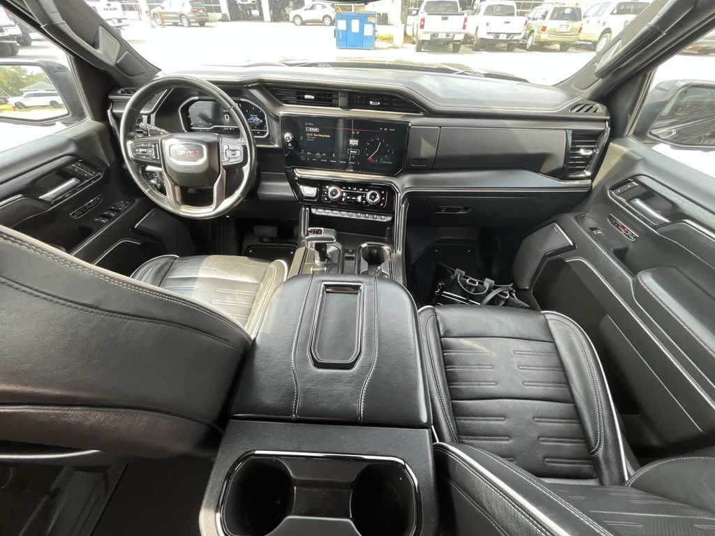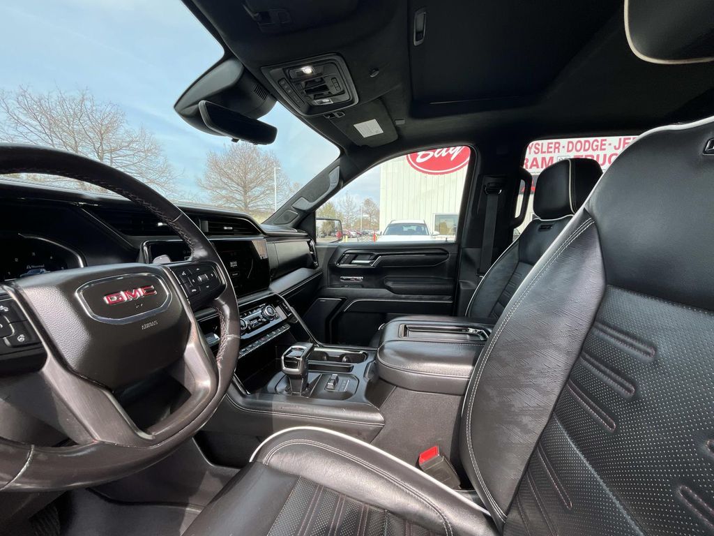 10-Speed Automatic, 4WD, Obsidian Rush Leather, 120-Volt Instrument Panel Power Outlet, 2 Charge/Data USB Ports Inside Center Console, 2 Type-C Charge-Only Rear USB Ports, 2 USB Ports, Bed View Camera, Bose Premium Series w/12-Speaker System, Color-Keyed Carpeting Floor Covering, Compass, Dark Nickel Header & Grille Insert Bars, Deep-Tinted Glass, Driver-Selectable Full-Locking Front Differential, Driver-Selectable Full-Locking Rear Differential, Electric Rear-Window Defogger, Electrical Steering Column Lock, Floor-Mounted Center Console, Front Prem Floor Liners w/Removable Carpet Insert, Front Rainsensing Wipers, GMC Connected Access Capable, HD Surround Vision, Heated 2nd Row Outboard Seats, Heated Driver & Front Outboard Passenger Seating, Heavy-Duty Air Filter, Hill Descent Control, Hitch Guidance, Hitch Guidance w/Hitch View, In-Vehicle Trailering App, Integrated Trailer Brake Controller, Keyless Open & Start, LED Cargo Area Lighting, Multicolor 15" Diagonal Head-Up Display, MultiPro Audio System by Kicker (LPO), Navigation System, OnStar & GMC Connected Services Capable, Perimeter Lighting, Power Door Locks, Power Front Passenger Windows w/Express Up/Down, Power Front Windows w/Driver Express Up/Down, Power Rake & Telescoping Steering Column, Power Rear Windows w/Express Down, Power Sliding Rear Window w/Rear Defogger, Power Sunroof, Preferred Equipment Group 4SG, Push Button Start, Rear Cross Traffic Braking, Rear Pedestrian Detection, Rear Wheelhouse Liners, Red Recovery Hooks, Remote Vehicle Starter System, SiriusXM w/360L, Spray-On Pickup Bed Liner w/AT4X Logo, Steering Wheel Audio Controls, Theft Deterrent System (Unauthorized Entry), Trailer Camera Provisions, Trailer Side Blind Zone Alert, Trailer Tire Pressure Monitor System, Trailering Package, Ultrasonic Front & Rear Park Assist, Universal Home Remote, Ventilated Driver & Front Passenger Seats, Wi-Fi Hotspot Capable, Wireless Charging, Wireless Phone Projection, 12 Speakers, 120-Volt Bed Mounted Power Outlet, 16-Way Power Driver Seat Adjuster w/Lumbar, 16-Way Power Passenger Seat Adjuster w/Lumbar, 3.23 Rear Axle Ratio, 4-Wheel Disc Brakes, ABS brakes, Air Conditioning, Alloy wheels, AM/FM radio: SiriusXM with 360L, Apple CarPlay/Android Auto, Auto High-beam Headlights, Auto-dimming door mirrors, Auto-dimming Rear-View mirror, Automatic Emergency Braking, Automatic temperature control, Black Sport Step (LPO), Brake assist, Buckle to Drive, Bumpers: body-color, Delay-off headlights, Driver door bin, Driver Memory, Driver vanity mirror, Dual front impact airbags, Dual front side impact airbags, Electronic Stability Control, Emergency communication system: OnStar and GMC Connected Services capable, Following Distance Indicator, Forward Collision Alert, Front anti-roll bar, Front Bucket Seats, Front Center Armrest, Front dual zone A/C, Front fog lights, Front License Plate Kit, Front Pedestrian Braking, Front reading lights, Front wheel independent suspension, Full Grain Leather Seat Trim, Fully automatic headlights, Garage door transmitter, Genuine wood dashboard insert, Genuine wood door panel insert, Heads-Up Display, Heated door mirrors, Heated front seats, Heated rear seats, Heated steering wheel, Illuminated entry, IntelliBeam Automatic High Beam On/Off, Lane Keep Assist w/Lane Departure Warning, Low tire pressure warning, Memory seat, Not Equipped w/Steering Column Lock, Occupant sensing airbag, Off-Road Suspension, Outside temperature display, Overhead airbag, Overhead console, Panic alarm, Passenger door bin, Passenger vanity mirror, Power door mirrors, Power driver seat, Power moonroof, Power passenger seat, Power steering, Power windows, Premium audio system: GMC Infotainment System, Radio data system, Radio: Premium GMC Infotainment Audio System, Rain sensing wipers, Rear Prem Floor Liners w/Removable Carpet Insert, Rear reading lights, Rear seat center armrest, Rear step bumper, Rear window defroster, Remote keyless entry, Safety Alert Seat, Security s