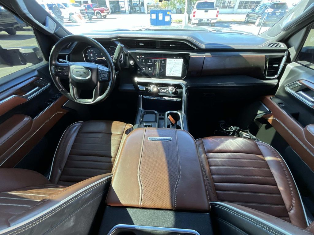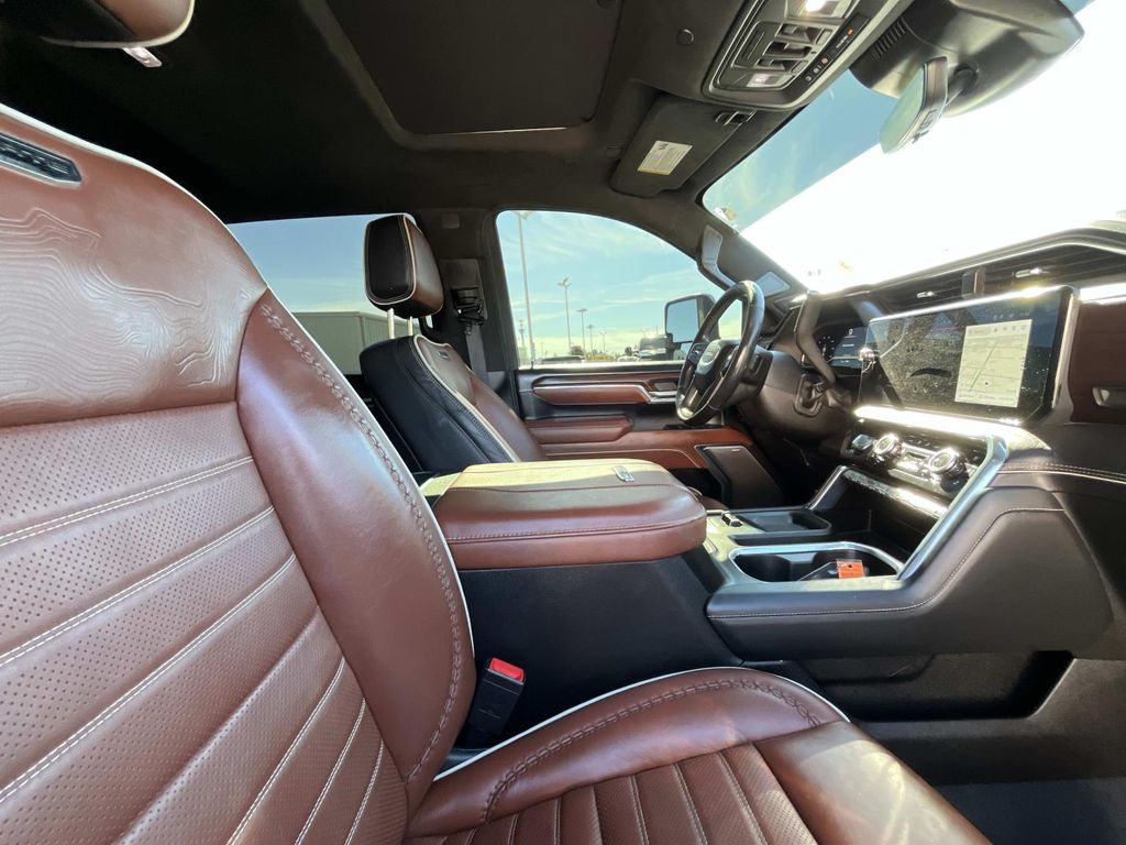 10-Speed Automatic, 4WD, Alpine Umber Leather, 12 Speakers, 120-Volt Bed Mounted Power Outlet, 120-Volt Instrument Panel Power Outlet, 16-Way Power Driver Seat Adjuster w/Lumbar, 16-Way Power Passenger Seat Adjuster w/Lumbar, 2 Charge-Only Rear USB Ports, 2 Charge/Data USB Ports Inside Center Console, 2 USB Ports, 2-Speed Active Transfer Case, 220-Amp Alternator, 3.42 Axle Ratio, 4-Wheel Disc Brakes, ABS brakes, Air Conditioning, Alloy wheels, AM/FM radio: SiriusXM with 360L, Apple CarPlay/Android Auto, Auto High-beam Headlights, Auto-dimming door mirrors, Auto-dimming Rear-View mirror, Automatic Emergency Braking, Automatic temperature control, Bed View Camera w/2 Trailer Camera Provisions, Block heater, Bose Premium Series 12-Speaker System, Brake assist, Buckle to Drive, Bumpers: body-color, Compass, Deep-Tinted Glass, Delay-off headlights, Driver door bin, Driver Memory, Driver vanity mirror, Dual front impact airbags, Dual front side impact airbags, Dual Heavy-Duty 70 Amp Battery, Electric Rear-Window Defogger, Electronic Stability Control, Emergency communication system: OnStar and GMC connected services capable, Floor-Mounted Center Console, Following Distance Indicator, Forward Collision Alert, Front anti-roll bar, Front Bucket Seats, Front Center Armrest, Front dual zone A/C, Front fog lights, Front License Plate Kit, Front Pedestrian Braking, Front Rain-Sensing Wipers, Front reading lights, Front wheel independent suspension, Full Grain Leather Seat Trim, Fully automatic headlights, Garage door transmitter, Genuine wood dashboard insert, Genuine wood door panel insert, GMC Connected Access Capable, Gooseneck/5th Wheel Prep Package, HD Surround Vision, Heads-Up Display, Heated 2nd Row Outboard Seats, Heated door mirrors, Heated Driver & Front Outboard Passenger Seats, Heated front seats, Heated rear seats, Heated steering wheel, Hill Descent Control, Hitch Guidance w/Hitch View, Illuminated entry, In-Vehicle Trailering System App, Inside Rearview Auto-Dimming Rear Camera Mirror, Integrated Trailer Brake Controller, IntelliBeam Automatic High Beam On/Off, Keyless Open & Start, Lane Departure Warning System, Leather steering wheel, LED Cargo Area Lighting, LED Smoked Amber Roof Marker Lamps, Low tire pressure warning, Manual Tilt-Wheel/Telescoping Steering Column, Memory seat, Multicolor 15" Diagonal Head-Up Display, Occupant sensing airbag, Off-Road Suspension, OnStar & GMC Connected Services Capable, Outside temperature display, Overhead airbag, Overhead console, Panic alarm, Passenger door bin, Passenger vanity mirror, Pickup Box, Power door mirrors, Power driver seat, Power Front Passenger Windows w/Express Up/Down, Power moonroof, Power passenger seat, Power Sliding Rear Window w/Defogger, Power steering, Power Sunroof, Power windows, Preferred Equipment Group 5SB, Premium audio system: Premium GMC Infotainment System, Push Button Start, Radio: AM/FM w/Premium GMC Infotainment System, Rain sensing wipers, Rear Cross Traffic Alert, Rear reading lights, Rear seat center armrest, Rear step bumper, Rear Wheelhouse Liners, Rear window defroster, Remote keyless entry, Remote Vehicle Starter System, Safety Alert Seat, Security system, Signature Denali Grille in Vadar Chrome, SiriusXM w/360L, Speed control, Speed-sensing steering, Split folding rear seat, Spray-On Bedliner w/Denali Logo, Steering Wheel Audio Controls, Steering wheel mounted audio controls, Tachometer, Technology Package, Telescoping steering wheel, Tilt steering wheel, Traction control, Trailer Cam Provisions & Trailer Viewing Software, Trailer Side Blind Zone Alert, Trailer Tire Pressure Monitor Sensors, Trip computer, Turn signal indicator mirrors, Ultrasonic Front & Rear Park Assist, Unauthorized Entry Theft-Deterrent System, Universal Home Remote, Variably intermittent wipers, Ventilated Driver & Front Passenger Seats, Ventilated front seats, Voltmeter, Wheels: 20" Ultra-Bright Machined Aluminum, Wireless Charging, Wireless Phone Projection, X31 Off-Ro