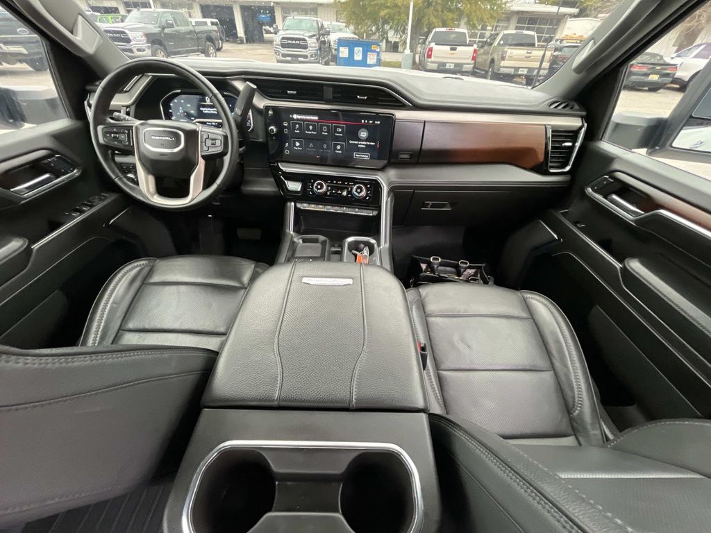 10-Speed Automatic, 4WD, Jet Black Leather, 12-Way Power Driver Seat Adjuster w/Lumbar, 12-Way Power Passenger Seat Adjuster w/Lumbar, 120-Volt Bed Mounted Power Outlet, 120-Volt Instrument Panel Power Outlet, 2 Charge-Only Rear USB Ports, 2 Charge/Data USB Ports Inside Center Console, 2 USB Ports, 2-Speed Active Transfer Case, 220-Amp Alternator, 4-Wheel Disc Brakes, 7 Speakers, ABS brakes, Adaptive Cruise Control, Air Conditioning, Alloy wheels, AM/FM radio: SiriusXM with 360L, Apple CarPlay/Android Auto, Auto High-beam Headlights, Auto-dimming door mirrors, Auto-dimming Rear-View mirror, Automatic Emergency Braking, Automatic temperature control, Bed View Camera w/2 Trailer Camera Provisions, Bose Premium 7-Speaker Sound System, Brake assist, Buckle to Drive, Bumpers: body-color, Compass, Deep-Tinted Glass, Delay-off headlights, Denali Reserve Package, Driver door bin, Driver Memory, Driver vanity mirror, Dual front impact airbags, Dual front side impact airbags, Electric Rear-Window Defogger, Electronic Stability Control, Emergency communication system: OnStar and GMC connected services capable, Engine Block Heater, Exhaust Brake, Floor-Mounted Center Console, Following Distance Indicator, Forge Perforated Leather-Appointed Front Seat Trim, Forward Collision Alert, Front anti-roll bar, Front Bucket Seats, Front Center Armrest, Front dual zone A/C, Front fog lights, Front Pedestrian Braking, Front Rain-Sensing Wipers, Front reading lights, Front wheel independent suspension, Fully automatic headlights, Garage door transmitter, Genuine wood dashboard insert, Genuine wood door panel insert, GMC Connected Access Capable, Gooseneck/5th Wheel Prep Package, HD Surround Vision, Heated 2nd Row Outboard Seats, Heated door mirrors, Heated Driver & Front Outboard Passenger Seats, Heated front seats, Heated rear seats, Heated steering wheel, Heavy-Duty 80 Amp Battery, Hill Descent Control, Hitch Guidance w/Hitch View, Illuminated entry, In-Vehicle Trailering System App, Inside Rearview Auto-Dimming Rear Camera Mirror, Integrated Trailer Brake Controller, IntelliBeam Automatic High Beam On/Off, Keyless Open & Start, Lane Departure Warning System, LED Cargo Area Lighting, LED Smoked Amber Roof Marker Lamps, Low tire pressure warning, Manual Tilt-Wheel/Telescoping Steering Column, Max Trailering Package, Memory seat, Multicolor 15" Diagonal Head-Up Display, Occupant sensing airbag, Off-Road Suspension, OnStar & GMC Connected Services Capable, Outside temperature display, Overhead airbag, Overhead console, Panic alarm, Passenger door bin, Passenger vanity mirror, Pickup Box, Polished Exhaust Tip, Power door mirrors, Power driver seat, Power Front Passenger Windows w/Express Up/Down, Power passenger seat, Power Sliding Rear Window w/Defogger, Power steering, Power Sunroof, Power windows, Power-Retractable Assist Steps, Preferred Equipment Group 5SA, Premium audio system: Premium GMC Infotainment System, Push Button Start, Radio: AM/FM w/Premium GMC Infotainment System, Rain sensing wipers, Rear Cross Traffic Alert, Rear reading lights, Rear seat center armrest, Rear step bumper, Rear Wheelhouse Liners, Rear window defroster, Remote keyless entry, Remote Vehicle Starter System, Safety Alert Seat, Security system, Signature Chrome Denali Grille, SiriusXM w/360L, Speed control, Speed-sensing steering, Split folding rear seat, Spray-On Bedliner w/Denali Logo, Steering Wheel Audio Controls, Steering wheel mounted audio controls, Tachometer, Technology Package, Telescoping steering wheel, Tilt steering wheel, Traction control, Trailer Cam Provisions & Trailer Viewing Software, Trailer Side Blind Zone Alert, Trip computer, Turn signal indicator mirrors, Ultrasonic Front & Rear Park Assist, Unauthorized Entry Theft-Deterrent System, Universal Home Remote, Variably intermittent wipers, Ventilated Driver & Front Passenger Seats, Ventilated front seats, Voltmeter, Wheels: 20" Ultra Bright Machined, Winter Grille Cover, Wireless Charging, Wireless Phon
