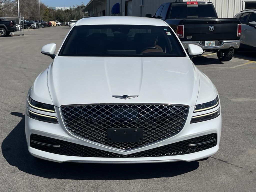 Navigation System, Option Group 01, Wheels: 18"x8.0J Alloy, 12 Speakers, 4-Wheel Disc Brakes, ABS brakes, Air Conditioning, Alloy wheels, AM/FM radio: SiriusXM, Android Auto & Apple CarPlay, Anti-whiplash front head restraints, Auto High-beam Headlights, Auto tilt-away steering wheel, Auto-dimming door mirrors, Auto-dimming Rear-View mirror, Automatic temperature control, Bumpers: body-color, Compass, Delay-off headlights, Driver door bin, Driver vanity mirror, Dual front impact airbags, Dual front side impact airbags, Electronic Stability Control, Emergency communication system: Genesis Connected Services, Exterior Parking Camera Rear, Four wheel independent suspension, Front anti-roll bar, Front Bucket Seats, Front Center Armrest, Front dual zone A/C, Front reading lights, Fully automatic headlights, Garage door transmitter: HomeLink, Heated door mirrors, Heated Front Bucket Seats, Heated front seats, Heated rear seats, Heated steering wheel, Illuminated entry, Knee airbag, Leather steering wheel, Leatherette Seating Surfaces, Low tire pressure warning, Memory seat, Occupant sensing airbag, Outside temperature display, Overhead airbag, Overhead console, Panic alarm, Passenger door bin, Passenger vanity mirror, Power door mirrors, Power driver seat, Power passenger seat, Power steering, Power windows, Radio data system, Radio: AM/FM/HD/SiriusXM Audio System, Rain sensing wipers, Rear anti-roll bar, Rear reading lights, Rear seat center armrest, Rear side impact airbag, Rear window defroster, Remote keyless entry, Security system, Speed control, Speed-sensing steering, Speed-Sensitive Wipers, Steering wheel memory, Steering wheel mounted audio controls, Tachometer, Telescoping steering wheel, Tilt steering wheel, Traction control, Trip computer, Turn signal indicator mirrors, Variably intermittent wipers, Navigation System, Option Group 01, Wheels: 18"x8.0J Alloy. Uyuni White 2023 Genesis G80 2.5T AWD 8-Speed Automatic I4