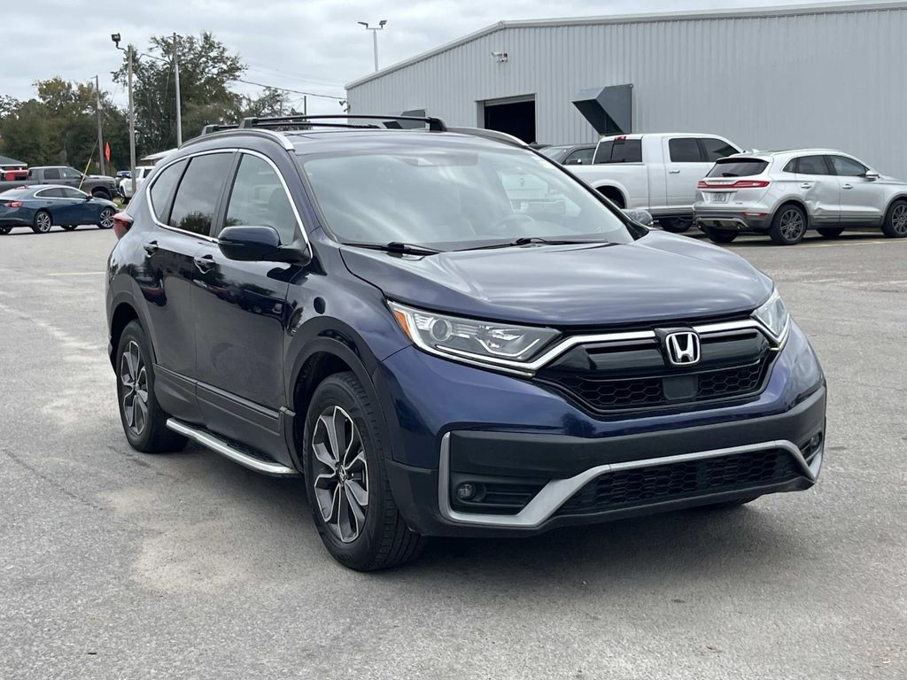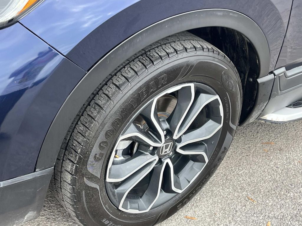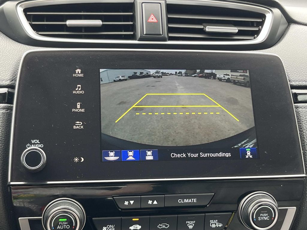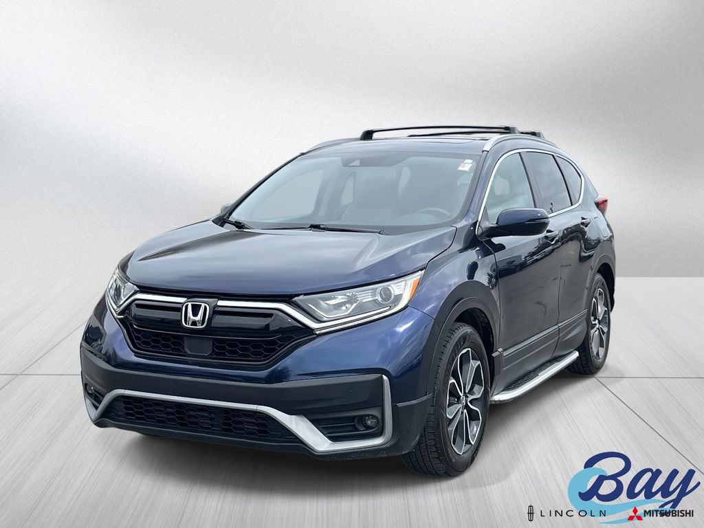 AWD, 18" Alloy Wheels, 4-Wheel Disc Brakes, 5.64 Axle Ratio, 8 Speakers, ABS brakes, Adaptive Cruise Control: Adaptive Cruise Control (ACC) with Low-Speed Follow, Air Conditioning, Alloy wheels, AM/FM radio: SiriusXM, Apple CarPlay/Android Auto, Auto High-beam Headlights, Auto-dimming Rear-View mirror, Automatic temperature control, Blind Spot Information (BSI) System warning, Brake assist, Bumpers: body-color, Compass, Delay-off headlights, Driver door bin, Driver vanity mirror, Dual front impact airbags, Dual front side impact airbags, Electronic Stability Control, Exterior Parking Camera Rear, Forward collision: Collision Mitigation Braking System (CMBS) + FCW mitigation, Four wheel independent suspension, Front anti-roll bar, Front Bucket Seats, Front Center Armrest, Front dual zone A/C, Front fog lights, Front reading lights, Garage door transmitter: HomeLink, Heated door mirrors, Heated Front Bucket Seats, Heated front seats, Illuminated entry, Leather Seat Trim, Leather Shift Knob, Low tire pressure warning, Memory seat, Occupant sensing airbag, Outside temperature display, Overhead airbag, Overhead console, Panic alarm, Passenger door bin, Passenger vanity mirror, Power door mirrors, Power driver seat, Power Liftgate, Power moonroof, Power passenger seat, Power steering, Power windows, Radio data system, Radio: 180-Watt AM/FM/HD/SiriusXM Audio System, Rear anti-roll bar, Rear seat center armrest, Rear window defroster, Rear window wiper, Remote keyless entry, Security system, Speed control, Speed-sensing steering, Speed-Sensitive Wipers, Split folding rear seat, Spoiler, Steering wheel mounted audio controls, Tachometer, Telescoping steering wheel, Tilt steering wheel, Traction control, Trip computer, Turn signal indicator mirrors, Variably intermittent wipers, AWD. Blue 2020 Honda CR-V EX-L AWD CVT 1.5L I4 DOHC 16V