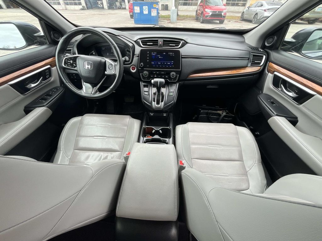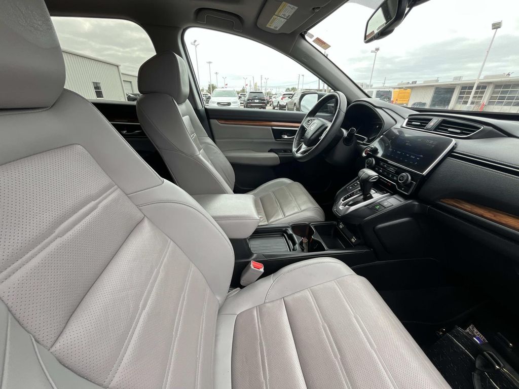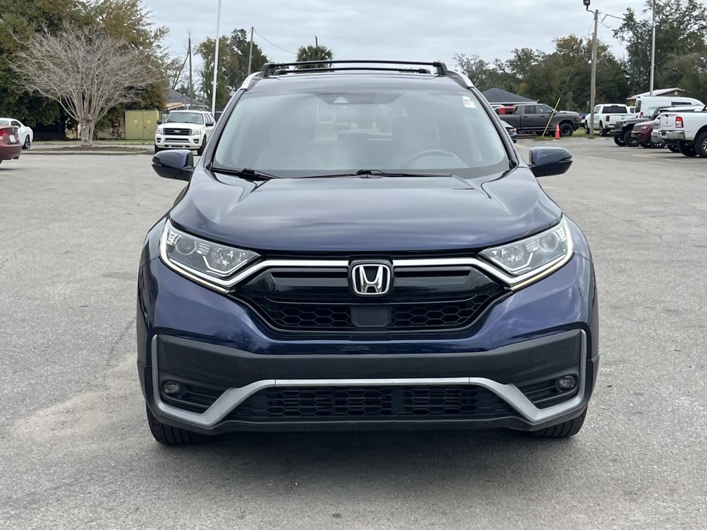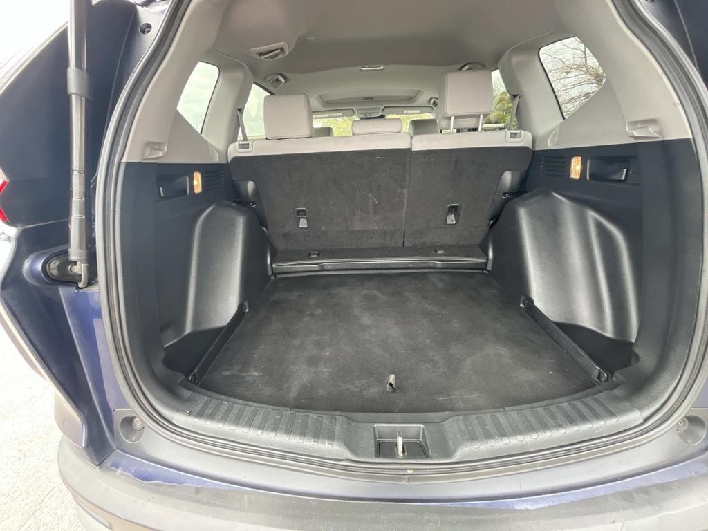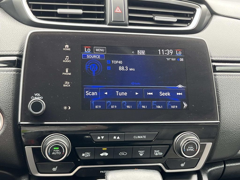 AWD, 18" Alloy Wheels, 4-Wheel Disc Brakes, 5.64 Axle Ratio, 8 Speakers, ABS brakes, Adaptive Cruise Control: Adaptive Cruise Control (ACC) with Low-Speed Follow, Air Conditioning, Alloy wheels, AM/FM radio: SiriusXM, Apple CarPlay/Android Auto, Auto High-beam Headlights, Auto-dimming Rear-View mirror, Automatic temperature control, Blind Spot Information (BSI) System warning, Brake assist, Bumpers: body-color, Compass, Delay-off headlights, Driver door bin, Driver vanity mirror, Dual front impact airbags, Dual front side impact airbags, Electronic Stability Control, Exterior Parking Camera Rear, Forward collision: Collision Mitigation Braking System (CMBS) + FCW mitigation, Four wheel independent suspension, Front anti-roll bar, Front Bucket Seats, Front Center Armrest, Front dual zone A/C, Front fog lights, Front reading lights, Garage door transmitter: HomeLink, Heated door mirrors, Heated Front Bucket Seats, Heated front seats, Illuminated entry, Leather Seat Trim, Leather Shift Knob, Low tire pressure warning, Memory seat, Occupant sensing airbag, Outside temperature display, Overhead airbag, Overhead console, Panic alarm, Passenger door bin, Passenger vanity mirror, Power door mirrors, Power driver seat, Power Liftgate, Power moonroof, Power passenger seat, Power steering, Power windows, Radio data system, Radio: 180-Watt AM/FM/HD/SiriusXM Audio System, Rear anti-roll bar, Rear seat center armrest, Rear window defroster, Rear window wiper, Remote keyless entry, Security system, Speed control, Speed-sensing steering, Speed-Sensitive Wipers, Split folding rear seat, Spoiler, Steering wheel mounted audio controls, Tachometer, Telescoping steering wheel, Tilt steering wheel, Traction control, Trip computer, Turn signal indicator mirrors, Variably intermittent wipers, AWD. Blue 2020 Honda CR-V EX-L AWD CVT 1.5L I4 DOHC 16V