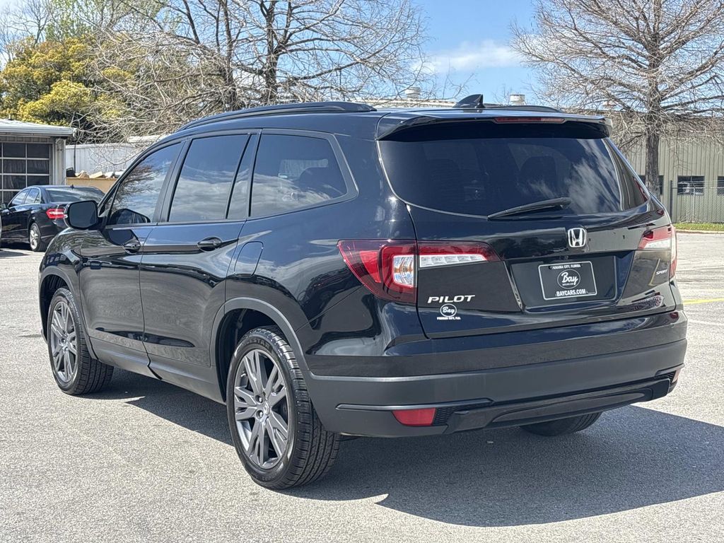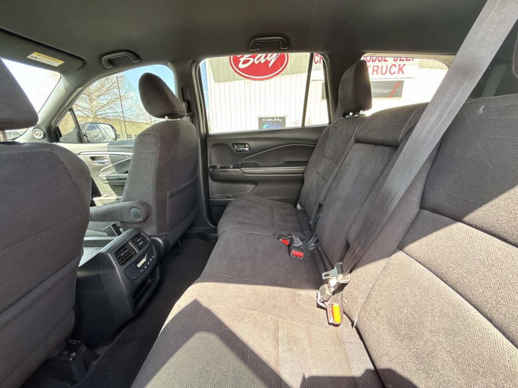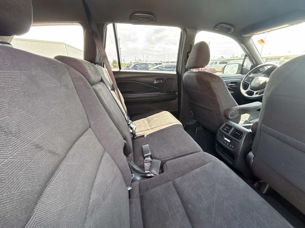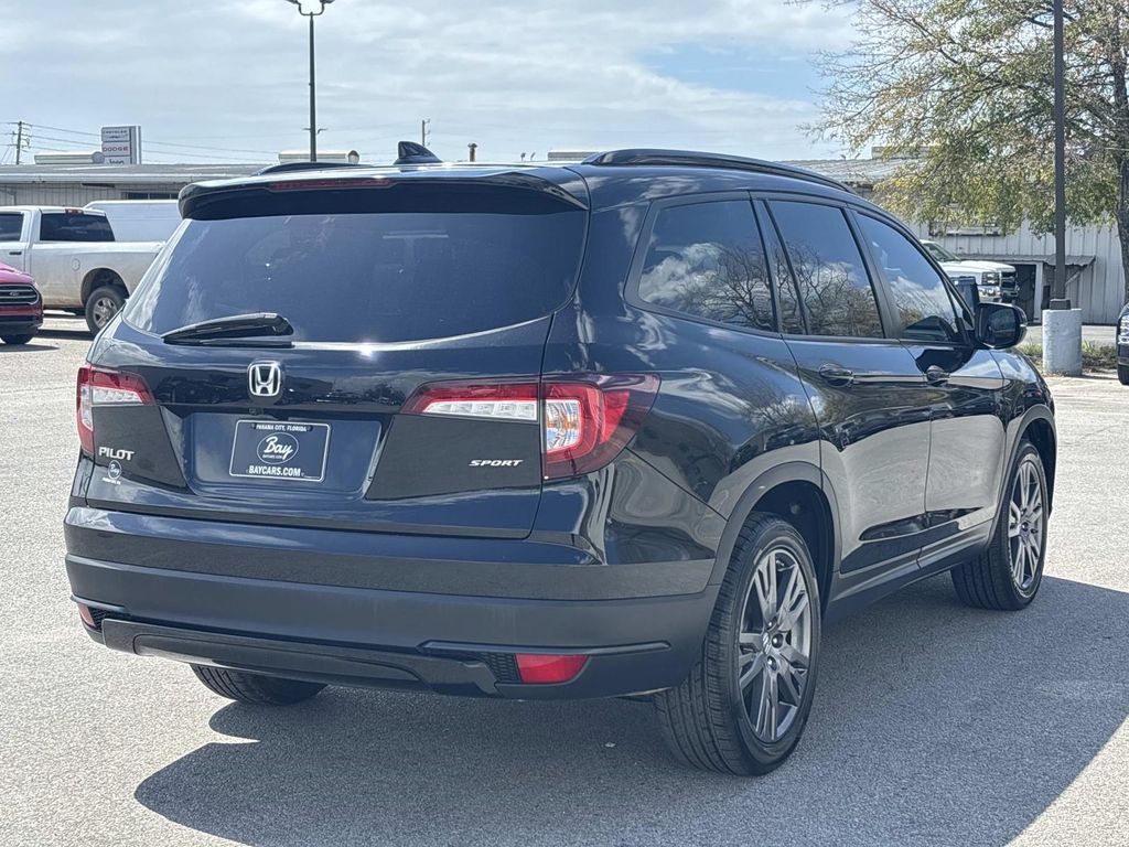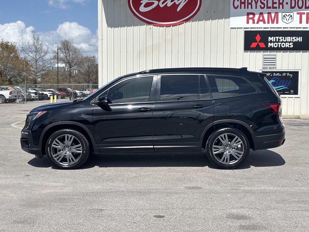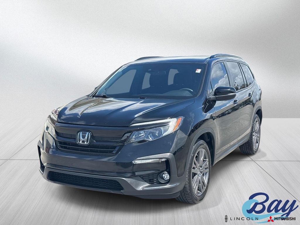 3rd row seats: split-bench, 4-Wheel Disc Brakes, 4.33 Axle Ratio, 7 Speakers, A/V remote: CabinControl, ABS brakes, Air Conditioning, Alloy wheels, AM/FM radio: SiriusXM, Apple CarPlay/Android Auto, Auto High-beam Headlights, Automatic temperature control, Blind Spot Information (BSI) System warning, Brake assist, Bumpers: body-color, Cloth Seat Trim, Delay-off headlights, Driver door bin, Driver vanity mirror, Dual front impact airbags, Dual front side impact airbags, Electronic Stability Control, Emergency communication system: HondaLink Assist, Exterior Parking Camera Rear, Forward collision: Collision Mitigation Braking System (CMBS) + FCW mitigation, Four wheel independent suspension, Front anti-roll bar, Front Bucket Seats, Front Center Armrest, Front dual zone A/C, Front fog lights, Front reading lights, Fully automatic headlights, Heated door mirrors, Heated Front Bucket Seats, Heated front seats, Illuminated entry, Lane departure: Lane Keeping Assist System (LKAS) active, Low tire pressure warning, Occupant sensing airbag, Outside temperature display, Overhead airbag, Overhead console, Panic alarm, Passenger door bin, Passenger vanity mirror, Power door mirrors, Power driver seat, Power steering, Power windows, Radio data system, Radio: 215-Watt Audio System, Rear air conditioning, Rear anti-roll bar, Rear reading lights, Rear seat center armrest, Rear window defroster, Rear window wiper, Reclining 3rd row seat, Remote keyless entry, Roof rack: rails only, Security system, Speed control, Speed-sensing steering, Speed-Sensitive Wipers, Split folding rear seat, Spoiler, Steering wheel mounted audio controls, Tachometer, Telescoping steering wheel, Tilt steering wheel, Traction control, Trip computer, Turn signal indicator mirrors, Variably intermittent wipers, Wheels: 20" Pewter Gray Alloy. Black 2022 Honda Pilot Sport FWD 9-Speed Automatic 3.5L V6 24V SOHC i-VTEC