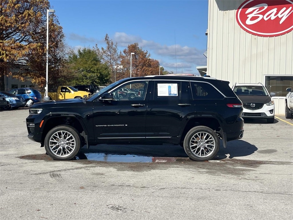 4WD, 2nd-Row Manual Window Shades, ADV Protech Group IV, Heads-Up Display, Heated front seats, Luxury Tech Group V, MOPAR Finishing Package, MOPAR Front Splash Guards, MOPAR Paint Protection Film, MOPAR Rear Splash Guards w/Jeep Logo, Navigation System, Night Vision w/Pedestrian-Animal Detection, Power Liftgate, Power moonroof, Quick Order Package 25S, Rear dual zone A/C, Rearview Autodim Digital Display Mirror, Wireless Charging Pad, 10 Speakers, 19 Speakers High Performance Audio, 3.45 Rear Axle Ratio, 4-Wheel Disc Brakes, 950 Watt Amplifier, ABS brakes, Active Noise Control System, Adaptive suspension, Air Conditioning, Alloy wheels, AM/FM radio: SiriusXM with 360L, Anti-whiplash front head restraints, Audio memory, Auto High-beam Headlights, Auto-dimming door mirrors, Auto-dimming Rear-View mirror, Auto-leveling suspension, Automatic temperature control, Brake assist, Bumpers: body-color, Compass, Conventional Differential Rear Axle, Delay-off headlights, Driver door bin, Driver vanity mirror, Dual front impact airbags, Dual front side impact airbags, Electronic Limited Slip Differential Delete, Electronic Stability Control, Emergency communication system, Four wheel independent suspension, Front anti-roll bar, Front Bucket Seats, Front Center Armrest w/Storage, Front dual zone A/C, Front fog lights, Front Passenger Interactive Display, Front reading lights, Fully automatic headlights, Garage door transmitter, Genuine wood dashboard insert, Genuine wood door panel insert, Heated door mirrors, Heated rear seats, Heated steering wheel, Illuminated entry, Knee airbag, Leather steering wheel, Low tire pressure warning, Memory seat, Nappa Leather Seats, Normal Duty Suspension, Occupant sensing airbag, Outside temperature display, Overhead airbag, Overhead console, Panic alarm, Passenger door bin, Passenger vanity mirror, Power door mirrors, Power driver seat, Power passenger seat, Power steering, Power windows, Radio data system, Radio: Uconnect 5 Nav w/10.1" Display, Rain sensing wipers, Rear air conditioning, Rear anti-roll bar, Rear reading lights, Rear seat center armrest, Rear window defroster, Rear window wiper, Remote keyless entry, Roof rack: rails only, Security system, Speed control, Speed-Sensitive Wipers, Split folding rear seat, Spoiler, Steering wheel memory, Steering wheel mounted audio controls, Tachometer, Telescoping steering wheel, Tilt steering wheel, Traction control, Trip computer, Turn signal indicator mirrors, Variably intermittent wipers, Ventilated front seats, Voltmeter, Wheels: 20" x 8.5" Fully Painted Aluminum Silver, 4WD, 2nd-Row Manual Window Shades, ADV Protech Group IV, Heads-Up Display, Heated front seats, Luxury Tech Group V, MOPAR Finishing Package, MOPAR Front Splash Guards, MOPAR Paint Protection Film, MOPAR Rear Splash Guards w/Jeep Logo, Navigation System, Night Vision w/Pedestrian-Animal Detection, Power Liftgate, Power moonroof, Quick Order Package 25S, Rear dual zone A/C, Rearview Autodim Digital Display Mirror, Wireless Charging Pad. Diamond Black Crystal Pearlcoat 2022 Jeep Grand Cherokee Summit 4WD 8-Speed Automatic HEMI 5.7L V8 Multi Displacement VVT