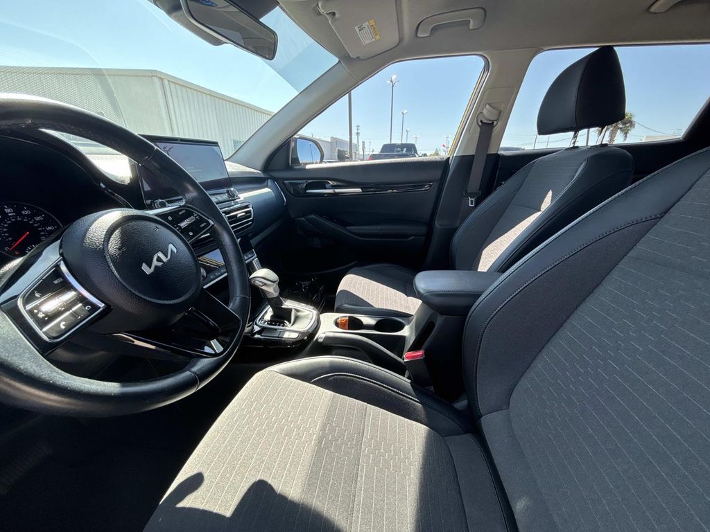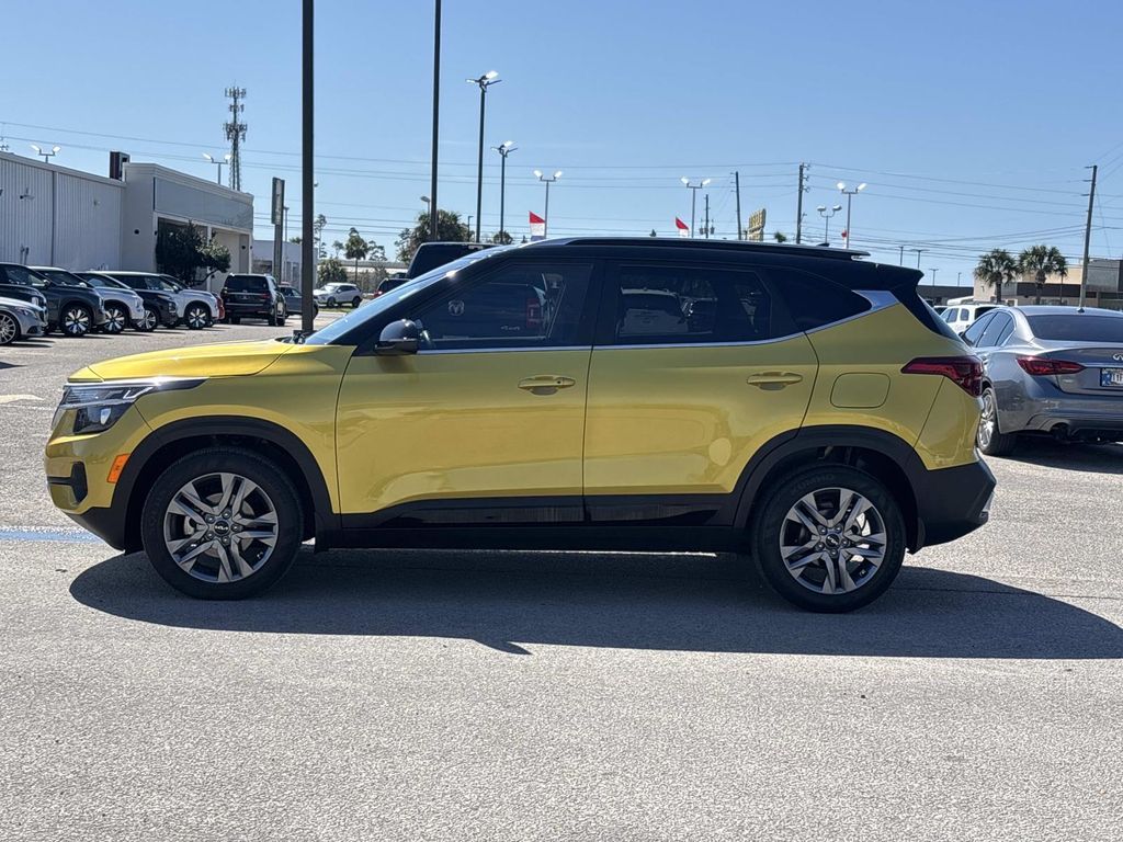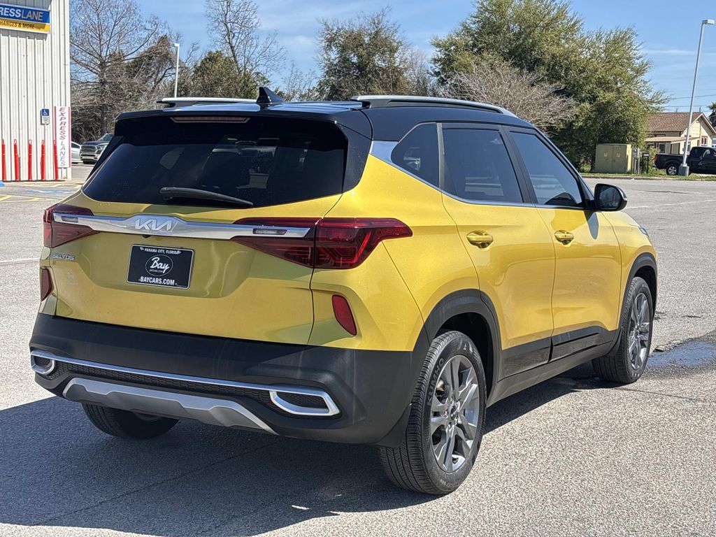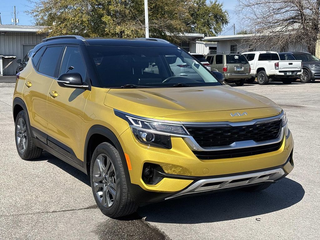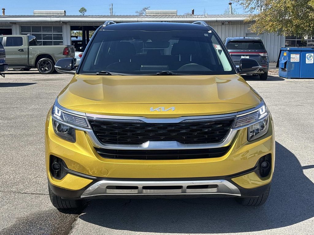 Exterior Parking Camera Rear, Glossy Black Door Garnish, Glossy Black Door Garnish Package, Navigation Package, Radio: AM/FM/MP3 Display Audio w/Navigation, 4-Wheel Disc Brakes, 6 Speakers, 6.052 Axle Ratio, ABS brakes, Air Conditioning, Alloy wheels, AM/FM radio, Apple CarPlay & Android Auto, Auto High-beam Headlights, Automatic temperature control, Brake assist, Bumpers: body-color, Cargo Mat, Cargo Net (Floor), Carpet Floor Mats, Carpeted Seatback Up Mat, Cloth & Sofino Premium Leatherette Seat Trim, Delay-off headlights, Driver door bin, Driver vanity mirror, Dual front impact airbags, Dual front side impact airbags, Electronic Stability Control, Emergency communication system: 911 Connect, Front anti-roll bar, Front Bucket Seats, Front Center Armrest, Front fog lights, Front reading lights, Front wheel independent suspension, Fully automatic headlights, Heated door mirrors, Illuminated entry, Leather Shift Knob, Low tire pressure warning, Mud Guards, Occupant sensing airbag, Outside temperature display, Overhead airbag, Overhead console, Panic alarm, Passenger door bin, Passenger vanity mirror, Power door mirrors, Power steering, Power windows, Radio: AM/FM/MP3 Display Audio, Rear seat center armrest, Rear window defroster, Rear window wiper, Remote keyless entry, Security system, Speed control, Speed-sensing steering, Split folding rear seat, Spoiler, Steering wheel mounted audio controls, Tachometer, Telescoping steering wheel, Tilt steering wheel, Traction control, Trip computer, Turn signal indicator mirrors, Variably intermittent wipers, Wheel Locks, Wheels: 17" Alloy w/Dark Gray Finish, Exterior Parking Camera Rear, Glossy Black Door Garnish, Glossy Black Door Garnish Package, Navigation Package, Radio: AM/FM/MP3 Display Audio w/Navigation. Starbright Yellow/Black Roof 2023 Kia Seltos S FWD CVT 2.0L I4 MPI