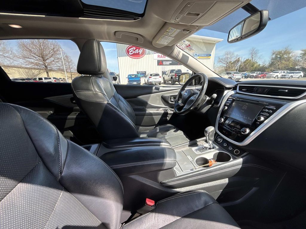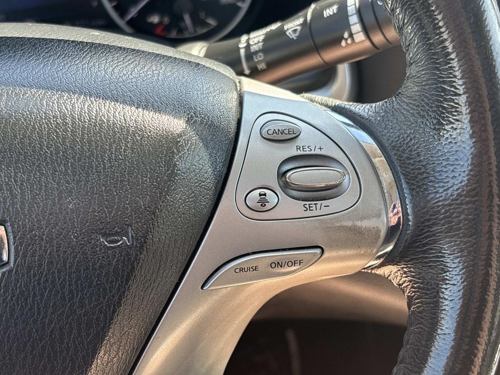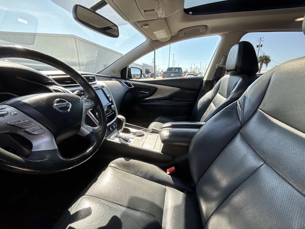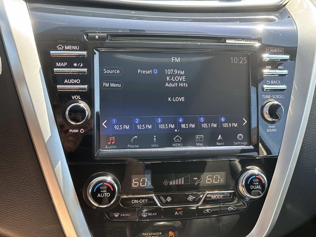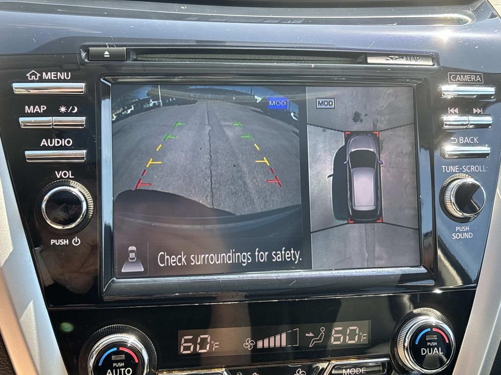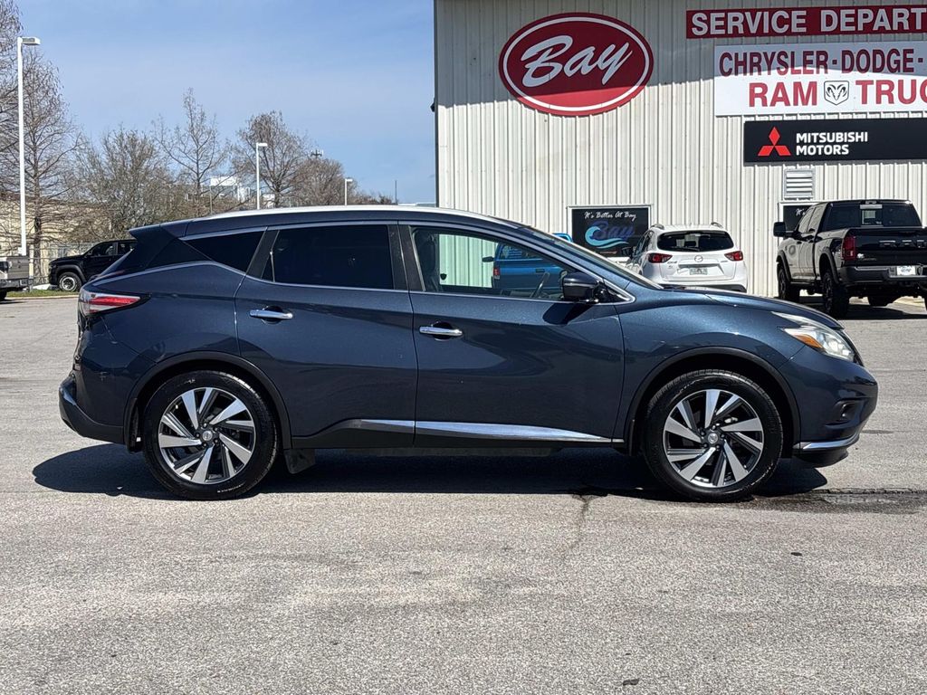 CVT with Xtronic, 11 Speakers, 4-Wheel Disc Brakes, 4.677 Axle Ratio, ABS brakes, Activation Disclaimer, Air Conditioning, Alloy wheels, AM/FM radio, Anti-whiplash front head restraints, Auto-dimming Rear-View mirror, Automatic temperature control, Brake assist, Bumpers: body-color, Cargo Package (DISC), CD player, Compass, Delay-off headlights, Driver door bin, Driver vanity mirror, Dual front impact airbags, Dual front side impact airbags, Electronic Stability Control, Floor Mats & Cargo Area Protector, Four wheel independent suspension, Front anti-roll bar, Front Bucket Seats, Front Center Armrest w/Storage, Front dual zone A/C, Front fog lights, Front reading lights, Fully automatic headlights, Garage door transmitter: HomeLink, Heated & Cooled Front Bucket Seats, Heated door mirrors, Heated front seats, Heated rear seats, Heated steering wheel, Illuminated entry, Intelligent Cruise Control, Interior Accent Lighting, Knee airbag, Leather Appointed Seat Trim, Leather Shift Knob, Low tire pressure warning, Memory seat, Navigation System, Occupant sensing airbag, Outside temperature display, Overhead airbag, Overhead console, Panic alarm, Passenger door bin, Passenger vanity mirror, Platinum Technology Package, Power door mirrors, Power driver seat, Power Liftgate, Power passenger seat, Power steering, Power windows, Predictive Forward Collision Warning (PFCW), Radio data system, Radio: AM/FM/CD Audio System w/Navigation, Rear anti-roll bar, Rear reading lights, Rear seat center armrest, Rear window defroster, Rear window wiper, Remote keyless entry, Roof rack: rails only, Security system, Speed control, Speed-sensing steering, Speed-Sensitive Wipers, Splash Guards, Split folding rear seat, Spoiler, Steering wheel memory, Steering wheel mounted audio controls, Tachometer, Telescoping steering wheel, Tilt steering wheel, Traction control, Trip computer, Turn signal indicator mirrors, Variably intermittent wipers, Ventilated front seats, Wheels: 20" Machined Aluminum-Alloy, CVT with Xtronic. Arctic Blue Metallic 2015 Nissan Murano Platinum FWD CVT with Xtronic 3.5L V6 DOHC