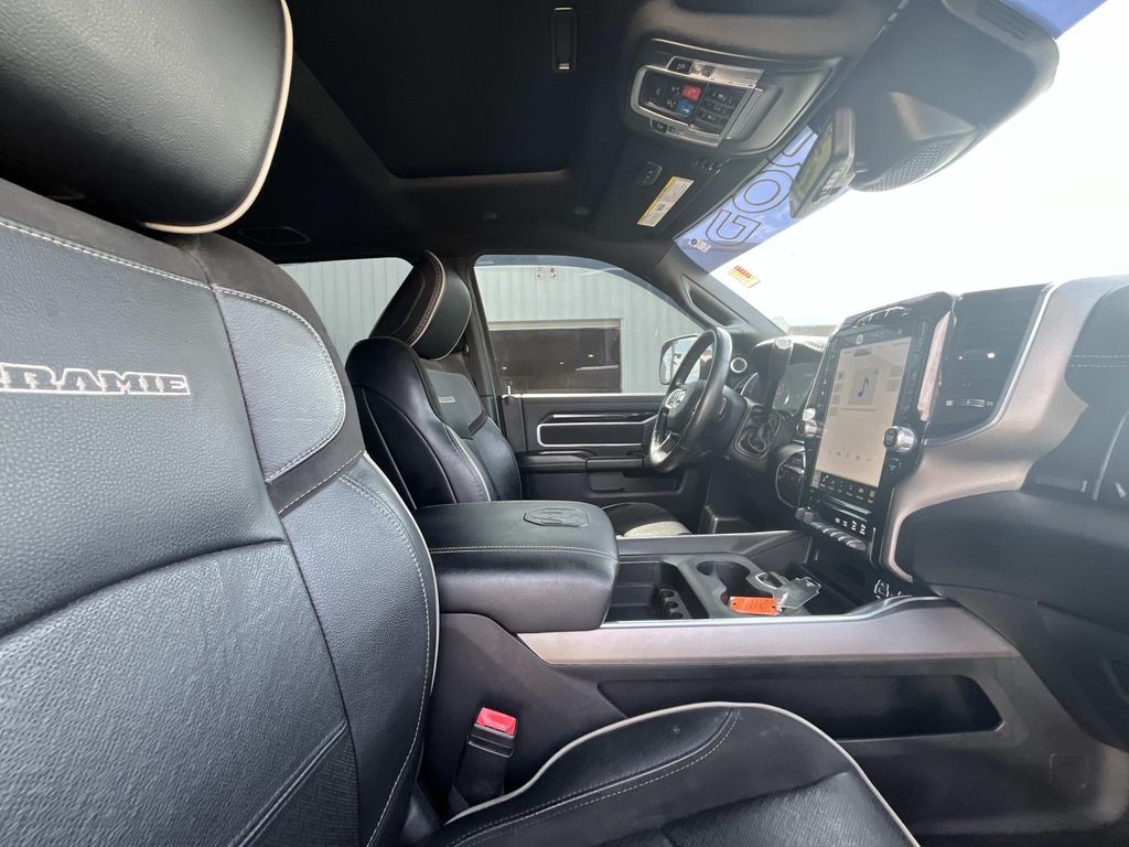 Lift Kit, 17 Speaker harman kardon Premium Sound, 2nd Row In Floor Storage Bins, Adaptive Cruise Control w/Stop, Adaptive Steering System, Auto High Beam Headlamp Control, Black Interior Accents, Body Color Door Handles, Body Color Grille Surround, Chrome Exterior Mirrors, Digital Rearview Mirror, Exterior Mirrors w/Memory, Foam Bottle Insert (Door Trim Panel), Full Speed Forward Collision Warning Plus, GPS Navigation, Heated Second Row Seats, Lane Keep Assist, Laramie Level B Equipment Group, Mirror-Mounted Aux Reverse Lamps, Painted Front Bumper, Painted Rear Bumper, ParkView Rear Back-Up Camera, Power Adjustable Convex Aux Mirrors, Power Adjustable Pedals w/Memory, Power Chrome Tow Mirrors w/Convex Spotter & Memory, Power Sunroof, Quick Order Package 2HH Laramie, Radio: Uconnect 5 Nav w/8.4" Display, Radio/Driver Seat/Mirrors/Pedals Memory, Rain Sensitive Windshield Wipers, Remote Tailgate Release, Safety Group B, SiriusXM Satellite Radio, Sport Appearance Package, Sport Decal, Ventilated Front Seats, #1 Seat Foam Cushion, 10 Speakers, 115V Auxiliary Rear Power Outlet, 12" Touchscreen Display, 2 Way Rear Headrest Seat, 220 Amp Alternator, 3.73 Axle Ratio, 4 Way Front Headrests, 4-Wheel Disc Brakes, 4G LTE Wi-Fi Hot Spot, 8.4" Touchscreen Display, ABS brakes, Active Noise Control System, Adjustable pedals, Air Conditioning, Alexa Built-In, All R1 High Radios, All Radio Equipped Vehicles, Alloy wheels, AM/FM radio: SiriusXM, Apple CarPlay, Apple CarPlay/Android Auto, Auto-dimming Rear-View mirror, Automatic temperature control, Bed Utility Group, Bluetooth Handsfree Phone & Audio, Brake assist, Bumpers: chrome, Center Hub, Compass, Connected Travel & Traffic Services, Connectivity - US/Canada, Delay-off headlights, Disassociated Touchscreen Display, Driver door bin, Driver vanity mirror, Dual front impact airbags, Dual front side impact airbags, Electronic Stability Control, Electronically Controlled Throttle, Folding Flat Load Floor Storage, For Details Visit DriveUconnect.com, For More Info, Call 800-643-2112, Front anti-roll bar, Front Bumper Sight Shields, Front Center Armrest w/Storage, Front dual zone A/C, Front fog lights, Front License Plate Bracket, Front reading lights, Front Seat Back Map Pockets, Fully automatic headlights, Garage door transmitter, Global Telematics Box Module (TBM), Google Android Auto, GPS Antenna Input, HD Radio, Heated door mirrors, Heated Front Seats, Heated front seats, Heated Steering Wheel, Heated steering wheel, High Back Seats, Illuminated entry, Integrated Center Stack Radio, Integrated Voice Command w/Bluetooth, Leather steering wheel, Leather Trim 40/20/40 Bench Seat, LED Bed Lighting, Low tire pressure warning, MOPAR Deployable Bed Step, MOPAR Spray In Bedliner, Occupant sensing airbag, Off-Road Information Pages, Outside temperature display, Overhead airbag, Overhead console, Panic alarm, Passenger door bin, Passenger vanity mirror, Power 8-Way Adjustable Passenger Seat, Power Adjust 8-Way Driver Seat, Power door mirrors, Power driver seat, Power passenger seat, Power steering, Power windows, Radio data system, Radio: Uconnect 5 Nav w/12.0" Display, Radio: Uconnect 5 w/8.4" Display, Rear 60/40 Folding Seat, Rear reading lights, Rear seat center armrest, Rear step bumper, Rear window defroster, Remote keyless entry, Security system, Selectable Tire Fill Alert, SiriusXM Radio Service, SiriusXM w/360L, Speed control, Split folding rear seat, Steering wheel mounted audio controls, Tachometer, Tilt steering wheel, Tip Start, Traction control, Trip computer, Turn signal indicator mirrors, Variably intermittent wipers, Vendor Painted Cargo Box, Vendor Painted Cargo Box Tracking, Voltmeter, Wheels: 18" x 8.0" Polished Aluminum, 17 Speaker harman kardon Premium Sound, 2nd Row In Floor Storage Bins, Adaptive Cruise Control w/Stop, Adaptive Steering System, Auto High Beam Headlamp Control, Black Interior Accents, Body Color Do