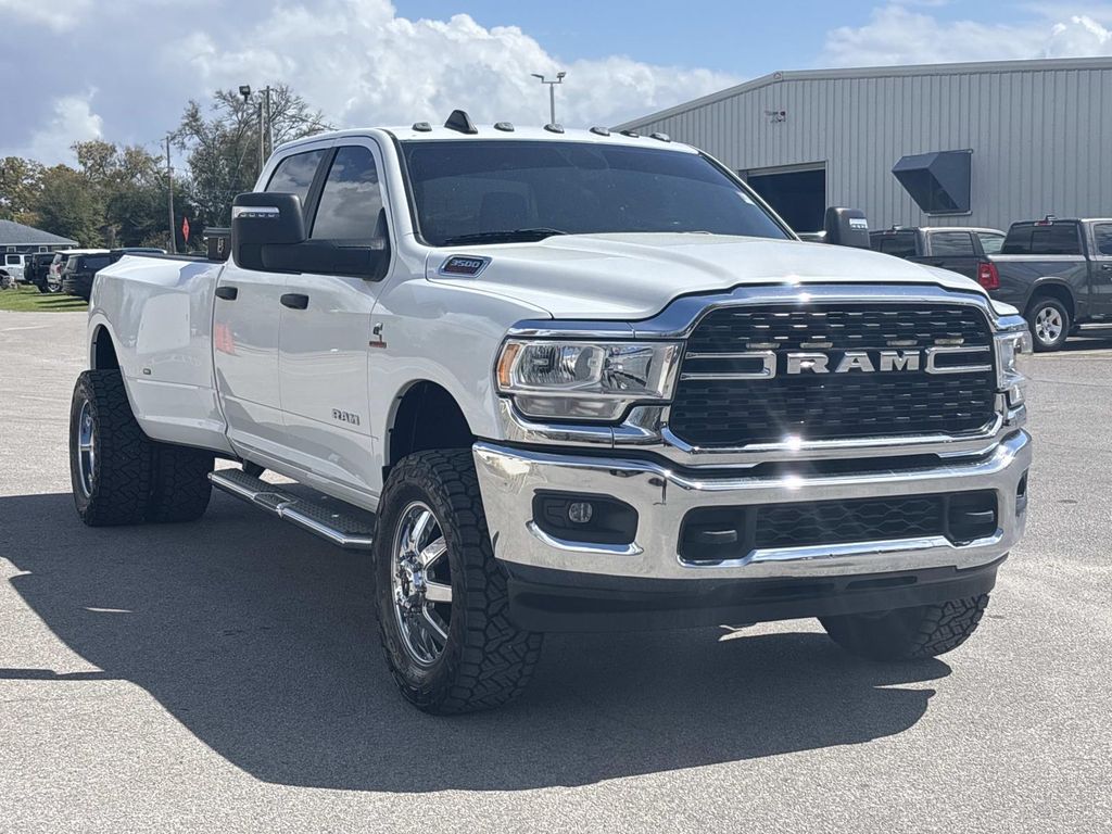 2 Way Rear Headrest Seat, 2nd Row In Floor Storage Bins, 3.73 Axle Ratio, 4 Way Front Headrests, 4-Wheel Disc Brakes, 40/20/40 Split Bench Seat, 4G LTE Wi-Fi Hot Spot, 5th Wheel/Gooseneck Towing Prep Group, 6 Speakers, 6000# Front Axle w/Hub Ext, 8.4" Touchscreen Display, ABS brakes, Active Noise Control System, Air Conditioning, Apple CarPlay, Auto Power-Folding Mirrors, Auto-dimming Rear-View mirror, Black Exterior Mirrors, Bluetooth Handsfree Phone & Audio, Box & Rear Fender Clearance Lamps, Brake assist, Bright Wheel Skins, Bumpers: chrome, Center Hub, Chrome Flat Cab-Length Side Steps, Clearance Lamps, Cloth 40/20/40 Bench Seat, Compass, Connectivity - US/Canada, Delay-off headlights, Driver door bin, Dual front impact airbags, Dual front side impact airbags, Dual Glove Boxes, Dual Rear Wheels, Electronic Stability Control, Electronically Controlled Throttle, Emergency communication system: SiriusXM Guardian, Exterior Mirrors Courtesy Lamps, Exterior Mirrors w/Heating Element, Exterior Mirrors w/Supplemental Signals, Foam Bottle Insert (Door Trim Panel), Footwell Courtesy Lamp, For Details Visit DriveUconnect.com, For More Info, Call 800-643-2112, Forward & Reverse Utility Lights, Front anti-roll bar, Front Armrest w/Cupholders, Front Center Armrest w/Storage, Front Center Seat Cushion Storage, Front Fog Lamps, Front License Plate Bracket, Front reading lights, Front Seat Back Map Pockets, Fully automatic headlights, Global Telematics Box Module (TBM), Glove Box Lamp, Google Android Auto, GPS Antenna Input, Heated door mirrors, Illuminated entry, Integrated Center Stack Radio, Integrated Voice Command w/Bluetooth, Leather Wrapped Steering Wheel, Level 1 Equipment Group, Locking Lower Glove Box, Low tire pressure warning, Manual Adjust 4-Way Driver Seat, Manual Adjust 4-Way Front Passenger Seat, Manufacturer's Statement of Origin, Mirror Running Lights, MOPAR Spray In Bedliner, Occupant sensing airbag, Outside temperature display, Overhead airbag, Overhead console, Panic alarm, ParkView Rear Back-Up Camera, Passenger door bin, Passenger vanity mirror, Power 2-Way Driver Lumbar Adjust, Power Adjust 8-Way Driver Seat, Power Adjust Mirrors, Power door mirrors, Power Heated Fold Telescopic Mirrors, Power steering, Power Telescoping Mirrors, Power windows, Power-Adjustable Convex Aux Mirrors, Premium Cloth 40/20/40 Bench Seat, Quick Order Package 2HZ Big Horn, Radio data system, Radio: Uconnect 3 w/5" Display, Radio: Uconnect 5 w/8.4" Display, Rear 60/40 Folding Seat, Rear Dome w/On/Off Switch Lamp, Rear Folding Seat, Rear seat center armrest, Rear step bumper, Rear Wheelhouse Liners, Remote keyless entry, Selectable Tire Fill Alert, SiriusXM Radio Service, SiriusXM Satellite Radio, Speed control, Steering Wheel Mounted Audio Controls, Storage Tray, Tachometer, Tilt steering wheel, Tip Start, Traction control, Trip computer, Turn signal indicator mirrors, Variably intermittent wipers, Voltmeter, Wheels: 17" x 6.0" Steel Chrome Clad, Wheels: 18" x 8.0" Steel Chrome Clad. Bright White Clearcoat 2023 Ram 3500 Big Horn 4WD 6-Speed Automatic Cummins 6.7L I6 Turbodiesel