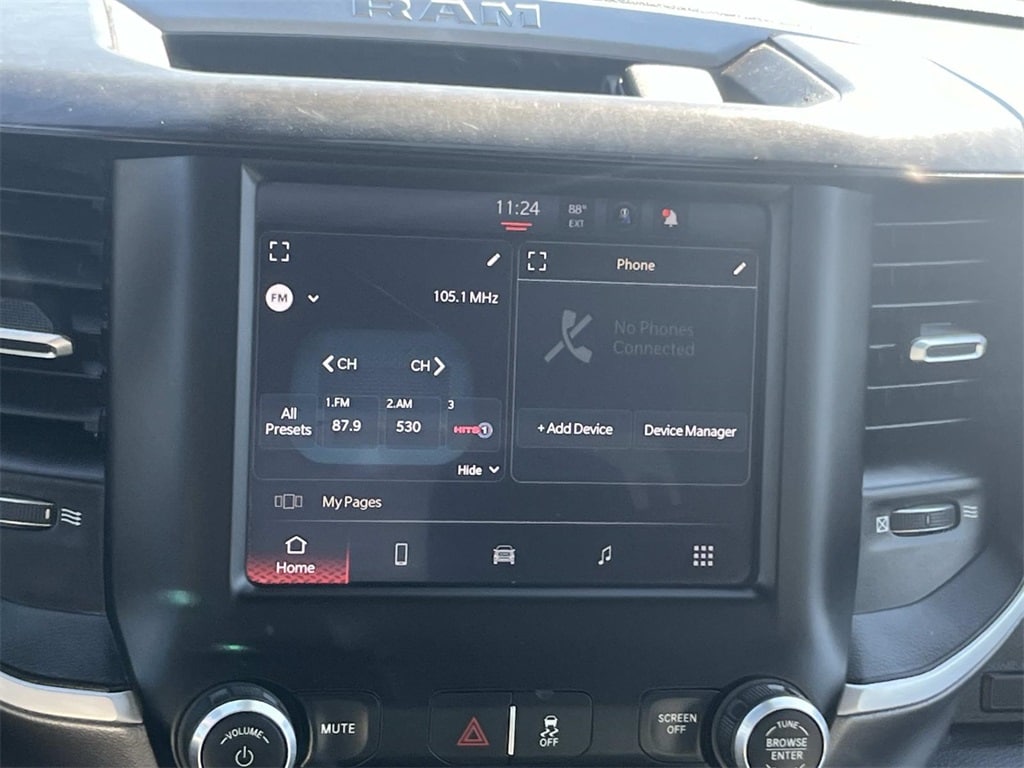 2 Way Rear Headrest Seat, 220 Amp Alternator, 2nd Row In Floor Storage Bins, 4 Way Front Headrests, 40/20/40 Split Bench Seat, 4G LTE Wi-Fi Hot Spot, 8.4" Touchscreen Display, Apple CarPlay, Auto Power-Folding Mirrors, Big Horn IP Badge, Black Exterior Mirrors, Bluetooth Handsfree Phone & Audio, Center Hub, Cold Weather Group, Connectivity - US/Canada, Dual Glove Boxes, Engine Block Heater, Exterior Mirrors Courtesy Lamps, Exterior Mirrors w/Heating Element, Exterior Mirrors w/Supplemental Signals, Foam Bottle Insert (Door Trim Panel), Footwell Courtesy Lamp, For Details, Visit DriveUconnect.com, For More Info, Call 800-643-2112, Forward & Reverse Utility Lights, Front Armrest w/Cupholders, Front Center Seat Cushion Storage, Front Fog Lamps, Front Performance Tuned Shock Absorbers, Front Seat Back Map Pockets, Global Telematics Box Module (TBM), Glove Box Lamp, Google Android Auto, GPS Antenna Input, Heavy Duty Snow Plow Prep Group, Hill Descent Control, Integrated Center Stack Radio, Integrated Voice Command w/Bluetooth, Leather Wrapped Steering Wheel, Level 1 Equipment Group, Locking Lower Glove Box, Manual Adjust 4-Way Front Passenger Seat, Mirror Running Lights, MOPAR Winter Front Grille Cover, Off Road Package, Power 2-Way Driver Lumbar Adjust, Power Adjust 8-Way Driver Seat, Power Adjust Mirrors, Power Adjustable Convex Aux Mirrors, Power Heated Fold Telescope Mirrors, Power Telescoping Mirrors, Premium Cloth 40/20/40 Bench Seat, Quick Order Package 2HZ Big Horn, Radio: Uconnect 3 w/5" Display, Radio: Uconnect 5 W w/8.4" Display (A62), Rear 60/40 Folding Seat, Rear Dome w/On/Off Switch Lamp, Rear Performance Tuned Shock Absorbers, Remote USB Port - Charge Only, Selectable Tire Fill Alert, SiriusXM Radio Service, SiriusXM Satellite Radio, Steering Wheel Mounted Audio Controls, Storage Tray, Tow Hooks, Wheels: 18" x 8.0" Polished Aluminum, 3.73 Axle Ratio, 4-Wheel Disc Brakes, 6 Speakers, ABS brakes, Active Noise Control System, Air Conditioning, Anti-Spin Differential Rear Axle, Brake assist, Bumpers: chrome, Center Stack Storage Drawer, Chrome Flat Cab-Length Side Steps, Cloth 40/20/40 Bench Seat, Compass, Delay-off headlights, Driver door bin, Dual front impact airbags, Dual front side impact airbags, Electronic Stability Control, Electronically Controlled Throttle, Emergency communication system: SiriusXM Guardian, Front anti-roll bar, Front Center Armrest w/Storage, Front License Plate Bracket, Front reading lights, Fully automatic headlights, Heated door mirrors, Illuminated entry, Low tire pressure warning, Manual Adjust 4-Way Driver Seat, MOPAR Spray In Bedliner, Occupant sensing airbag, Outside temperature display, Overhead airbag, Overhead console, Panic alarm, ParkSense Front/Rear Park Assist System, ParkView Rear Back-Up Camera, Passenger door bin, Passenger vanity mirror, Power door mirrors, Power steering, Power windows, Premium Cloth 40/20/40 Bench Seat (DISC), Radio data system, Radio: Uconnect 5 W w/8.4" Display, Rear anti-roll bar, Rear Backup Alarm, Rear Folding Seat, Rear seat center armrest, Rear step bumper, Rear Window Defroster, Remote keyless entry, Speed control, Tachometer, Tilt steering wheel, Tip Start, Traction control, Trip computer, Turn signal indicator mirrors, Variably intermittent wipers, Voltmeter, Wheels: 18" x 8.0" Steel Chrome Clad, 2 Way Rear Headrest Seat, 220 Amp Alternator, 2nd Row In Floor Storage Bins, 4 Way Front Headrests, 40/20/40 Split Bench Seat, 4G LTE Wi-Fi Hot Spot, 8.4" Touchscreen Display, Apple CarPlay, Auto Power-Folding Mirrors, Big Horn IP Badge, Black Exterior Mirrors, Bluetooth Handsfree Phone & Audio, Center Hub, Cold Weather Group, Connectivity - US/Canada, Dual Glove Boxes, Engine Block Heater, Exterior Mirrors Courtesy Lamps, Exterior Mirrors w/Heating Element, Exterior Mirrors w/Supplemental Signals, Foam Bottle Insert (Door Trim Panel), Footwell Courtesy Lamp, For Details, Visit DriveUconnect.com, For More I