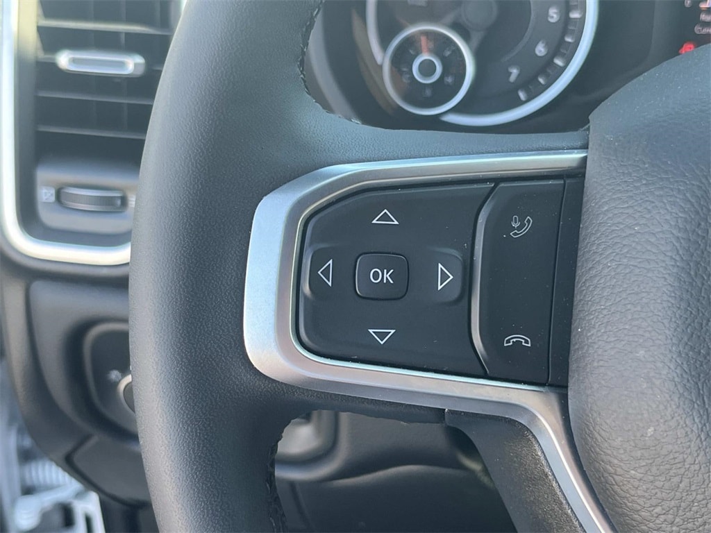 12" Touchscreen Display, 2nd Row In Floor Storage Bins, 4G LTE Wi-Fi Hot Spot, 9 Alpine Speakers w/Subwoofer, Air Conditioning ATC w/Dual Zone Control, Alexa Built-In, Anti-Spin Differential Rear Axle, Apple CarPlay, Auto Power-Folding Mirrors, Auto-Dimming Rear-View Mirror, Big Horn Level 1 Plus Equipment Group, Black Exterior Mirrors, Connected Travel & Traffic Services, Connectivity - US/Canada, Dual Glove Boxes, Emergency Vehicle Alert System (EVAS), Exterior Mirrors Courtesy Lamps, Exterior Mirrors w/Heating Element, Exterior Mirrors w/Supplemental Signals, Foam Bottle Insert (Door Trim Panel), Footwell Courtesy Lamp, Forward & Reverse Utility Lights, Global Telematics Box Module (TBM), Glove Box Lamp, Google Android Auto, GPS Antenna Input, GPS Navigation, HD Radio, Integrated Voice Command w/Bluetooth, LED Bed Lighting, Locking Lower Glove Box, Luxury Steering Wheel, Mirror Running Lights, MOPAR Deployable Bed Step, MOPAR Spray In Bedliner, Off-Road Info Pages, Power Adjust Mirrors, Power Adjustable Convex Aux Mirrors, Power Heated Folding Telescopic Mirrors, Power Telescoping Mirrors, Premium Cloth 40/20/40 Bench Seat, Quick Order Package 2UZ Big Horn, Radio: Uconnect 5 Nav w/12.0" Display, Rear Dome w/On/Off Switch Lamp, Remote Start System, Selectable Tire Fill Alert, SiriusXM Radio Service, SiriusXM w/360L, Steering Wheel Mounted Audio Controls, Trailer Tow Pages, 2 Way Rear Headrest Seat, 3.73 Axle Ratio, 4 Way Front Headrests, 4-Wheel Disc Brakes, 40/20/40 Split Bench Seat, 6 Speakers, ABS brakes, Air Conditioning, Alloy wheels, AM/FM radio: SiriusXM, Apple CarPlay/Android Auto, Brake assist, Bumpers: chrome, Chrome Flat Wheel-to-Wheel Side Steps, Cloth 40/20/40 Bench Seat, Compass, Delay-off headlights, Delete Deployable Bed Step (DISC), Driver door bin, Dual front impact airbags, Dual front side impact airbags, Electronic Stability Control, Folding Flat Load Floor Storage, Front anti-roll bar, Front Armrest w/Cupholders, Front Center Armrest w/Storage, Front Center Seat Cushion Storage, Front fog lights, Front License Plate Bracket, Front reading lights, Front Seat Back Map Pockets, Fully automatic headlights, Heated door mirrors, Illuminated entry, Low tire pressure warning, Manual Adjust 4-Way Driver Seat, Manual Adjust 4-Way Front Passenger Seat, Manufacturer's Statement of Origin, Occupant sensing airbag, Outside temperature display, Overhead airbag, Overhead console, Panic alarm, ParkView Rear Back-Up Camera, Passenger door bin, Passenger vanity mirror, Power 2-Way Driver Lumbar Adjust, Power Adjust 8-Way Driver Seat, Power door mirrors, Power steering, Power windows, Radio data system, Radio: Uconnect 5 w/8.4" Display, Rear 60/40 Folding Seat, Rear anti-roll bar, Rear Folding Seat, Rear seat center armrest, Rear step bumper, Rear window defroster, Remote keyless entry, Remote USB Port - Charge Only, Security system, Speed control, Storage Tray, Tachometer, Tilt steering wheel, Traction control, Trip computer, Turn signal indicator mirrors, Variably intermittent wipers, Vinyl 2nd Row Seat, Voltmeter, Wheels: 18" x 8.0" Polished Aluminum, 12" Touchscreen Display, 2nd Row In Floor Storage Bins, 4G LTE Wi-Fi Hot Spot, 9 Alpine Speakers w/Subwoofer, Air Conditioning ATC w/Dual Zone Control, Alexa Built-In, Anti-Spin Differential Rear Axle, Apple CarPlay, Auto Power-Folding Mirrors, Auto-Dimming Rear-View Mirror, Big Horn Level 1 Plus Equipment Group, Black Exterior Mirrors, Connected Travel & Traffic Services, Connectivity - US/Canada, Dual Glove Boxes, Emergency Vehicle Alert System (EVAS), Exterior Mirrors Courtesy Lamps, Exterior Mirrors w/Heating Element, Exterior Mirrors w/Supplemental Signals, Foam Bottle Insert (Door Trim Panel), Footwell Courtesy Lamp, Forward & Reverse Utility Lights, Global Telematics Box Module (TBM), Glove Box Lamp, Google Android Auto, GPS Antenna Input, GPS Navigation, HD Radio, Integrated Voice Command w/Bluetooth, LED Bed L