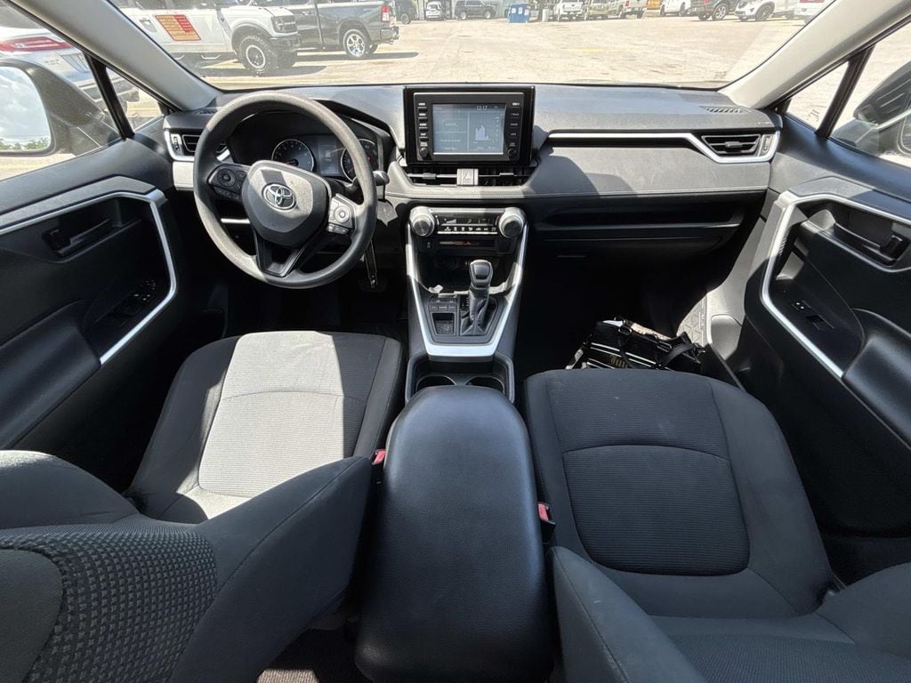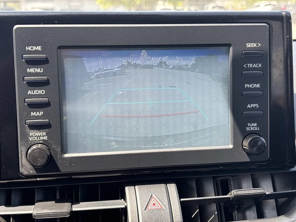 Black Cloth, 17" Wheels, 4-Wheel Disc Brakes, 6 Speakers, ABS brakes, Air Conditioning, AM/FM radio, Apple CarPlay, Auto High-beam Headlights, Axle Ratio: 3.177, Brake assist, Bumpers: body-color, Driver door bin, Driver vanity mirror, Dual front impact airbags, Dual front side impact airbags, Electronic Stability Control, Emergency communication system: Entune Safety Connect, Exterior Parking Camera Rear, Fabric Seat Trim, Four wheel independent suspension, Front anti-roll bar, Front Bucket Seats, Front Center Armrest, Front reading lights, Illuminated entry, Knee airbag, Low tire pressure warning, Occupant sensing airbag, Outside temperature display, Overhead airbag, Overhead console, Panic alarm, Passenger door bin, Passenger vanity mirror, Power door mirrors, Power steering, Power windows, Radio data system, Radio: Entune 3.0 Audio, Rear anti-roll bar, Rear seat center armrest, Rear window defroster, Rear window wiper, Remote keyless entry, Roof rack: rails only, Speed control, Speed-sensing steering, Split folding rear seat, Spoiler, Steering wheel mounted audio controls, Tachometer, Telescoping steering wheel, Tilt steering wheel, Traction control, Trip computer, Black Cloth. Midnight Black Metallic 2019 Toyota RAV4 LE FWD 8-Speed Automatic 2.5L 4-Cylinder DOHC Dual VVT-i
