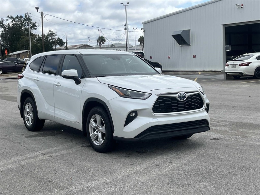 2.5L I4 PDI Hybrid DOHC 16V LEV3-SULEV30, 18" Painted Alloy Wheels, 3rd row seats: split-bench, Apple CarPlay/Android Auto, Exterior Parking Camera Rear, Front Bucket Seats, Power driver seat, Power Liftgate, Rear air conditioning, Reclining 3rd row seat, Remote keyless entry, 4-Wheel Disc Brakes, 6 Speakers, ABS brakes, Air Conditioning, Alloy wheels, AM/FM radio: SiriusXM, Auto High-beam Headlights, Automatic temperature control, Axle Ratio: TBD, Brake assist, Bumpers: body-color, Delay-off headlights, Driver door bin, Driver vanity mirror, Dual front impact airbags, Dual front side impact airbags, Electronic Stability Control, Emergency communication system: Safety Connect (up to 10-year trial subscription), Fabric Seat Trim, Four wheel independent suspension, Front anti-roll bar, Front Center Armrest, Front dual zone A/C, Front fog lights, Front reading lights, Fully automatic headlights, Heated door mirrors, Illuminated entry, Knee airbag, Leather Shift Knob, Leather steering wheel, Low tire pressure warning, Occupant sensing airbag, Outside temperature display, Overhead airbag, Overhead console, Panic alarm, Passenger door bin, Passenger vanity mirror, Power door mirrors, Power steering, Power windows, Radio: 8" Toyota Audio Multimedia, Rear anti-roll bar, Rear reading lights, Rear seat center armrest, Rear window defroster, Rear window wiper, Security system, Speed control, Speed-sensing steering, Split folding rear seat, Spoiler, Steering wheel mounted audio controls, Telescoping steering wheel, Tilt steering wheel, Traction control, Trip computer, Turn signal indicator mirrors, Variably intermittent wipers, 2.5L I4 PDI Hybrid DOHC 16V LEV3-SULEV30, 18" Painted Alloy Wheels, 3rd row seats: split-bench, Apple CarPlay/Android Auto, Exterior Parking Camera Rear, Front Bucket Seats, Power driver seat, Power Liftgate, Rear air conditioning, Reclining 3rd row seat, Remote keyless entry. Pearl 2023 Toyota Highlander Hybrid LE AWD eCVT 2.5L I4 PDI Hybrid DOHC 16V LEV3-SULEV30