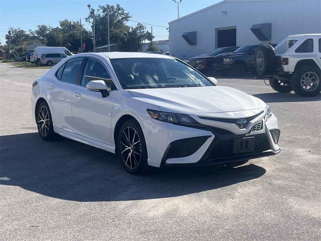 ABS brakes, Active Cruise Control, Alloy wheels, Electronic Stability Control, Front dual zone A/C, Heated door mirrors, Illuminated entry, Low tire pressure warning, Remote keyless entry, Traction control. White 2024 Toyota Camry SE FWD 8-Speed Automatic 2.5L I4 DOHC 16V