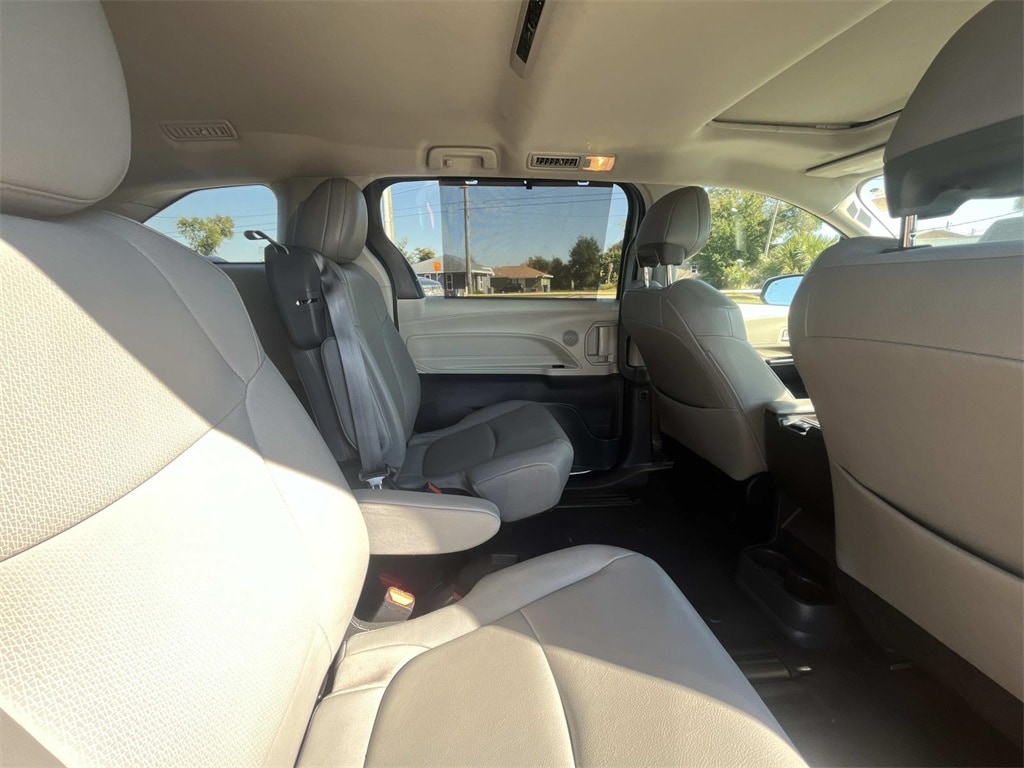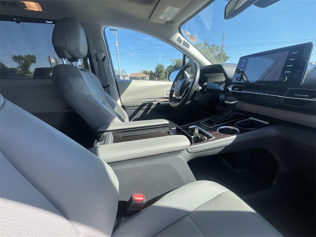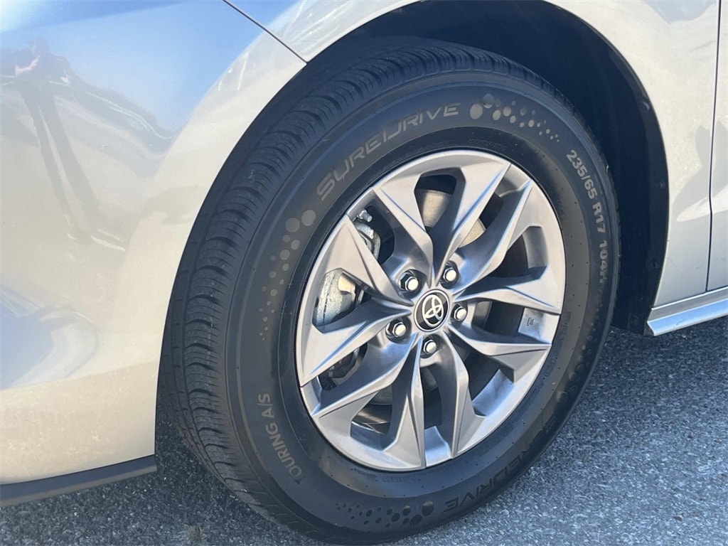 3rd row seats: split-bench, Alloy wheels, Front Heated Bucket Seats, Heated front seats, Power Liftgate, Power passenger seat, Rear air conditioning, Rear dual zone A/C, Reclining 3rd row seat, 17" Alloy Wheels, 4-Wheel Disc Brakes, 8 Speakers, ABS brakes, Air Conditioning, AM/FM radio: SiriusXM, Apple CarPlay/Android Auto, Auto High-beam Headlights, Auto-dimming door mirrors, Auto-dimming Rear-View mirror, Automatic temperature control, Axle Ratio: TBA, Brake assist, Bumpers: body-color, Compass, Delay-off headlights, Door auto-latch, Driver door bin, Driver vanity mirror, Driver's Seat Mounted Armrest, Dual front impact airbags, Dual front side impact airbags, Electronic Stability Control, Emergency communication system: Safety Connect (3-year trial), Exterior Parking Camera Rear, Four wheel independent suspension, Front anti-roll bar, Front Bucket Seats, Front dual zone A/C, Front reading lights, Fully automatic headlights, Heated door mirrors, Illuminated entry, Knee airbag, Lane Departure Warning System, Leather Shift Knob, Leather steering wheel, Low tire pressure warning, Occupant sensing airbag, Outside temperature display, Overhead airbag, Overhead console, Panic alarm, Passenger door bin, Passenger seat mounted armrest, Passenger vanity mirror, Power door mirrors, Power driver seat, Power steering, Power windows, Radio data system, Radio: Audio Plus, Rear anti-roll bar, Rear reading lights, Rear side impact airbag, Rear window defroster, Rear window wiper, Remote keyless entry, Speed control, Speed-sensing steering, Split folding rear seat, Spoiler, Steering wheel mounted audio controls, Tachometer, Telescoping steering wheel, Tilt steering wheel, Traction control, Trip computer, Turn signal indicator mirrors, Variably intermittent wipers, 3rd row seats: split-bench, Alloy wheels, Front Heated Bucket Seats, Heated front seats, Power Liftgate, Power passenger seat, Rear air conditioning, Rear dual zone A/C, Reclining 3rd row seat. Silver 2024 Toyota Sienna XLE FWD CVT 2.5L I4